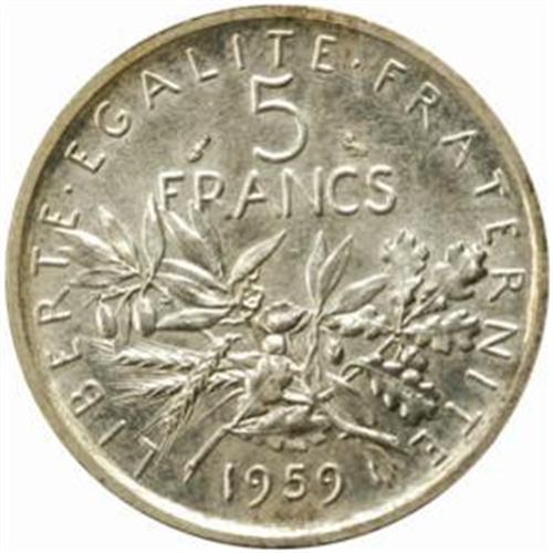 France. Fifth Republic (1959-). Silver Pattern Essai 5 Francs by Roty. 1959.