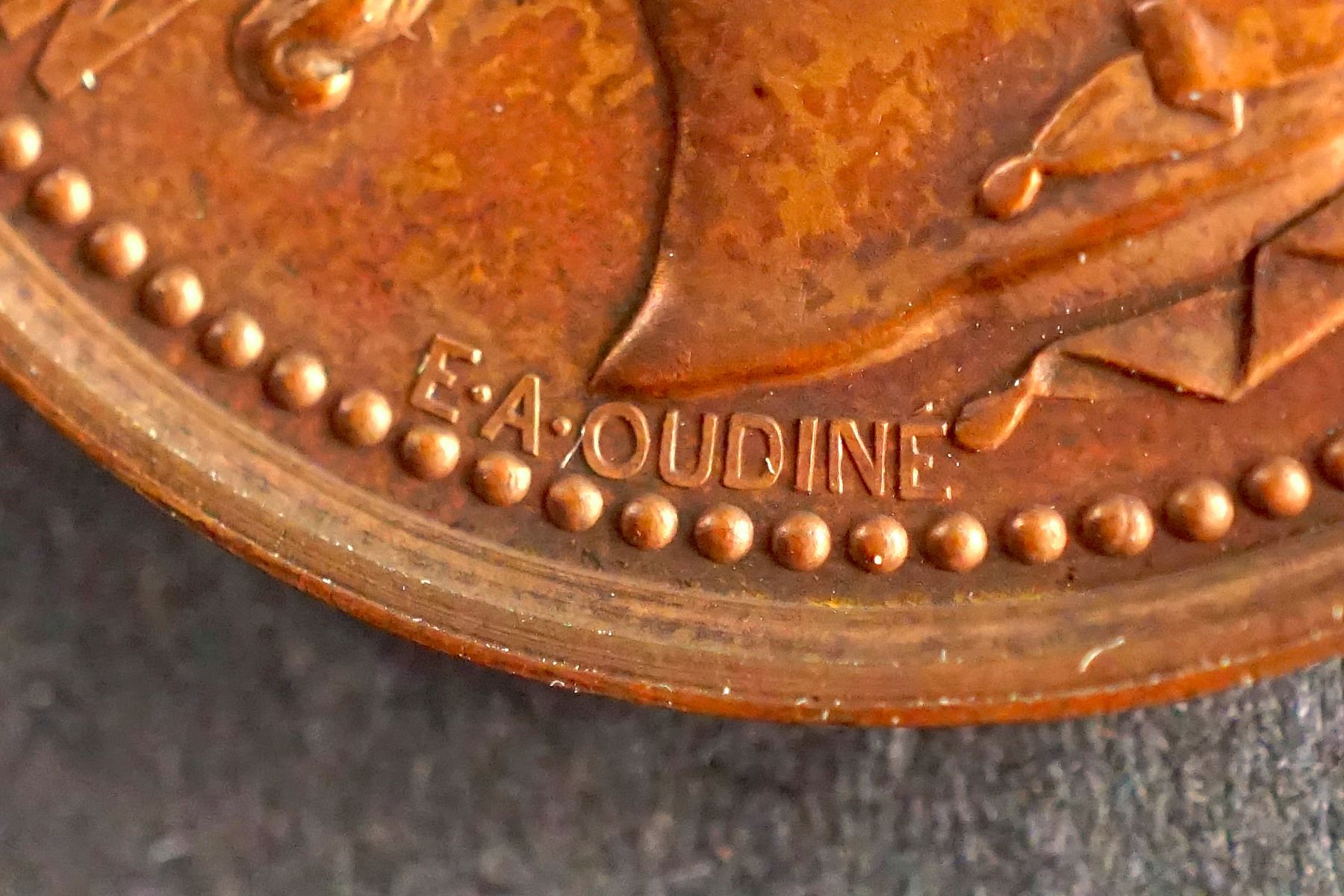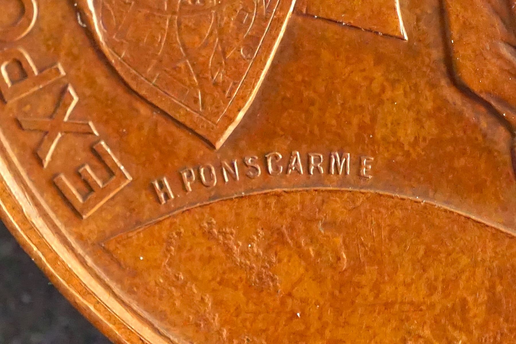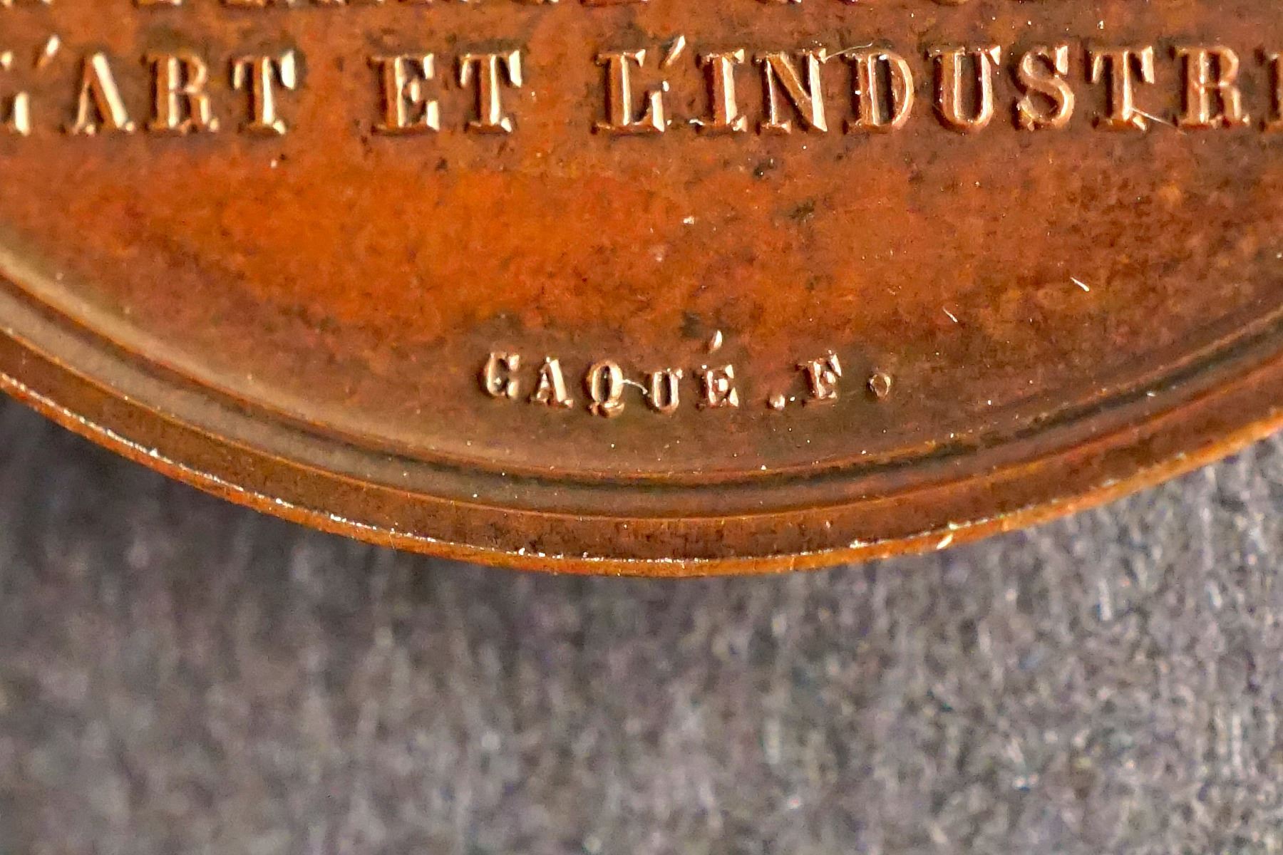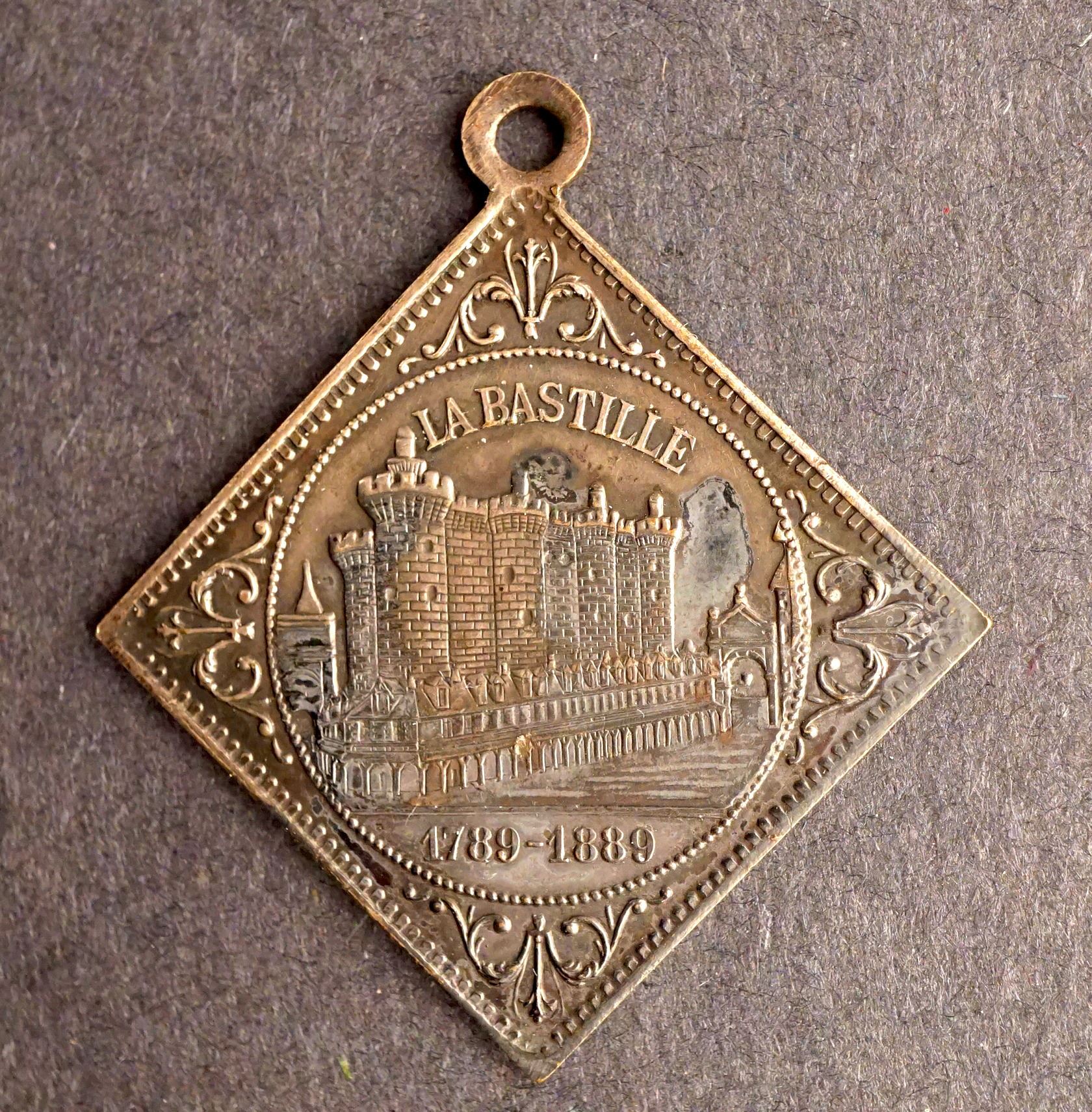 1) Obverse: NAPOLEON III EMPEREUR Laureate bust left. Signed: E.A. OUDINÉ below. Reverse: EXPOSITION UNIVERSELLE Robed woman standing, facing, arms outstretched, with a wreath in each hand. Below her, the Imperial eagle and wreath, To left and right, seated women. On the lower right of the ground line: 1855. In exergue: LA France COURONNE / L'ART ET L'INDUSTRIE. Signed at bottom: CAQUÉ. F. Gem condition, with glossy fields. 37 mm. 22.1 grams, Paris Mint BRONZE mark on edge. 2) Obverse: NAPOLEON IIIEMPEREUR Laureate bust left. Signed: N. PONSCARME F. Reverse "EXPOSITION UNIVERSELLE DE MDCCCLXVII A PARIS". Angel flying left, holding small designed carpet. Below, a small view of the planet. Signed: H. POCSCARME, 37 mm, 22.0 grams. Paris mint mark BRONZE on the edge. Condition is Gem Ung, with highly glossy surfaces. 3) Obverse: REPUBLIQUE FRAÇAISE Bust of Ceres, left. Signed: OUDINÉ. Reverse: EXPOSITION UNIVERSELLE PARIS 1878, Scene of the exposition grounds. In exergue: ADMINISTRATION DES MONNAIES / ET MÉDAILLES. Signed below: ALPHÉE DUBOIS, 50 mm, 58.1 grams. Condition is UNC. 4) Diamond form Souvenir medallion Exposition Universelle 1889, scene of exposition grounds / the Bastille 1789 - 1889. 31 x 31 mm, suspension hook at corner. White metal, 10.1 grams.