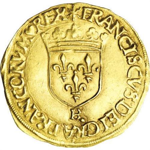 <B>Francois I gold Ecu d'Or au Soleil (1515-47),</B></I> Friedberg 351, nice XF, boldly struck and very attractive, Rouen mint, B below shield. Very scarce and attractive type.<BR><BR><b>Shipping:</b> Coins & Currency (<a target="_blank" href="http://www.heritageauctions.com/common/shipping.php">view shipping information</a>)