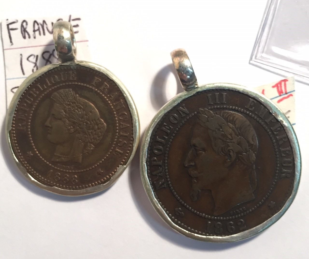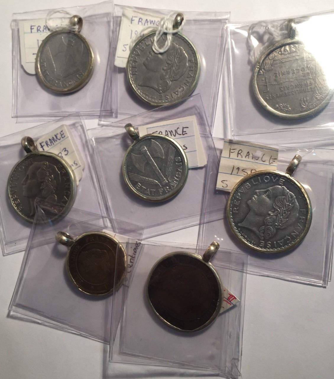 France & French Colonies 8 Coins in Sterling Silver Bezels