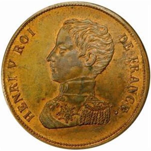 France. Henry V, Pretender to the Throne (1820-83). Bronze Pattern 2 Francs. 1833.