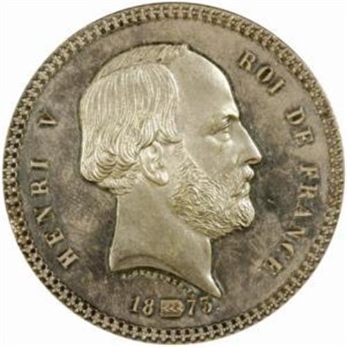 France. Henry V, Pretender to the Throne (1820-83). Silvered Bronze Pattern 5 Francs. 1873.