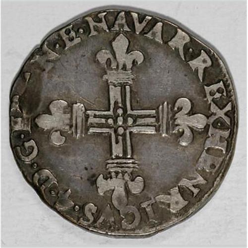 <B>Henry VI (1553-1610) 1/4 Ecu of Navarre 1592/1,</B></I> Dupl.-1239, Ciani-1529, Laf.-1105, St Palais mint, nearly VF, old gray toning.<BR><BR><b>Shipping:</b> Coins & Currency (<a target="_blank" href="http://www.heritageauctions.com/common/shipping.php">view shipping information</a>)