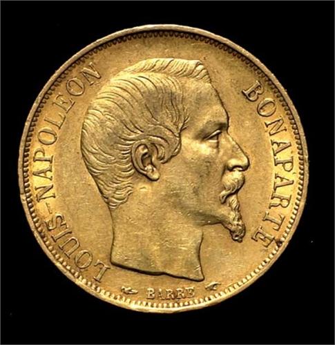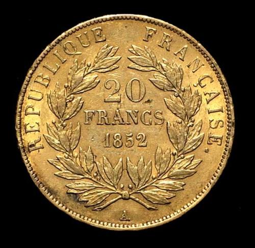 Francia - Seconda Repubblica (1848-1852) - Presidente Luigi Napoleone - 20 Franchi 1852 - Zecca: Parigi - Diritto: effigie di Luigi Napoleone a destra - Rovescio: valore e data entro corona di alloro -