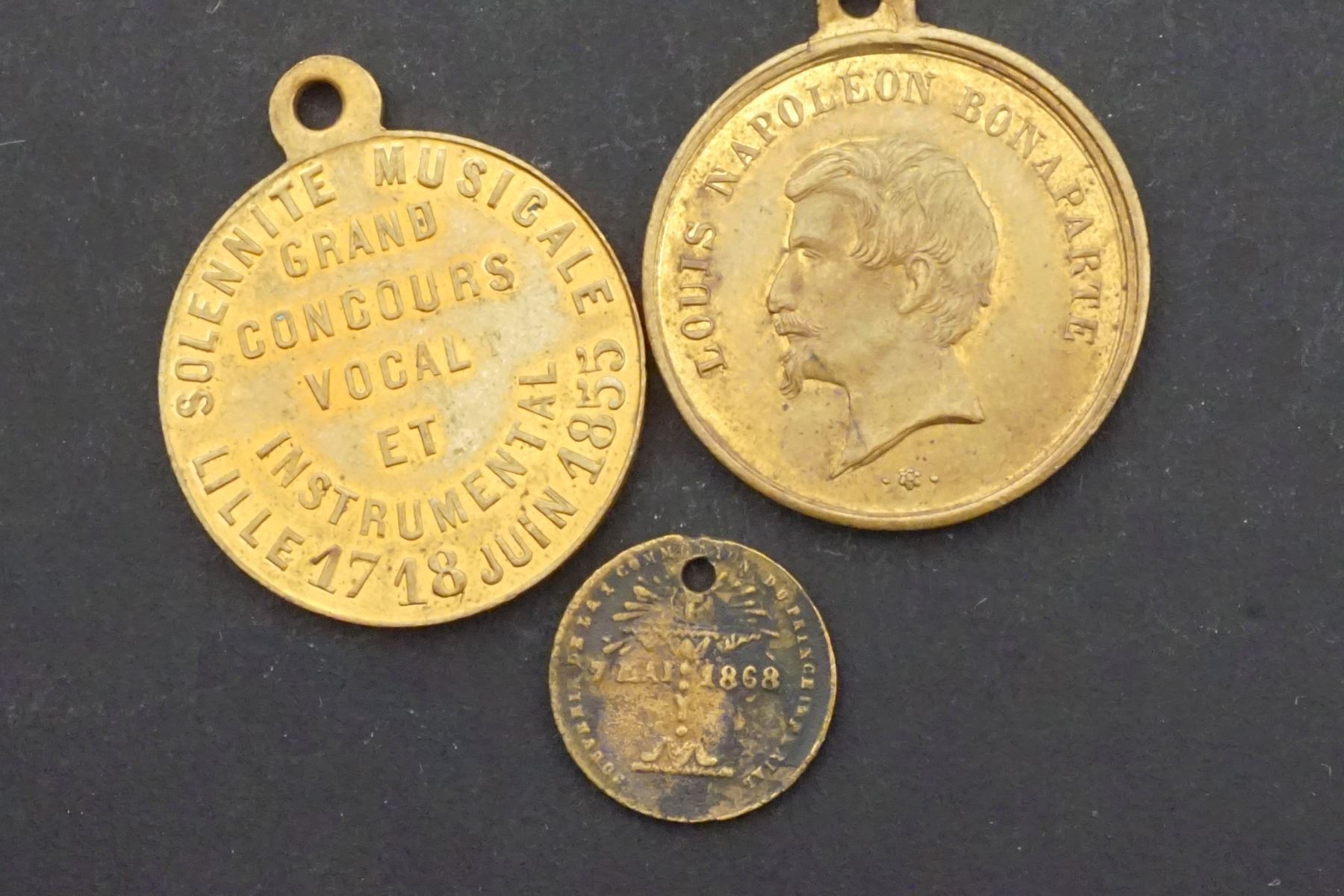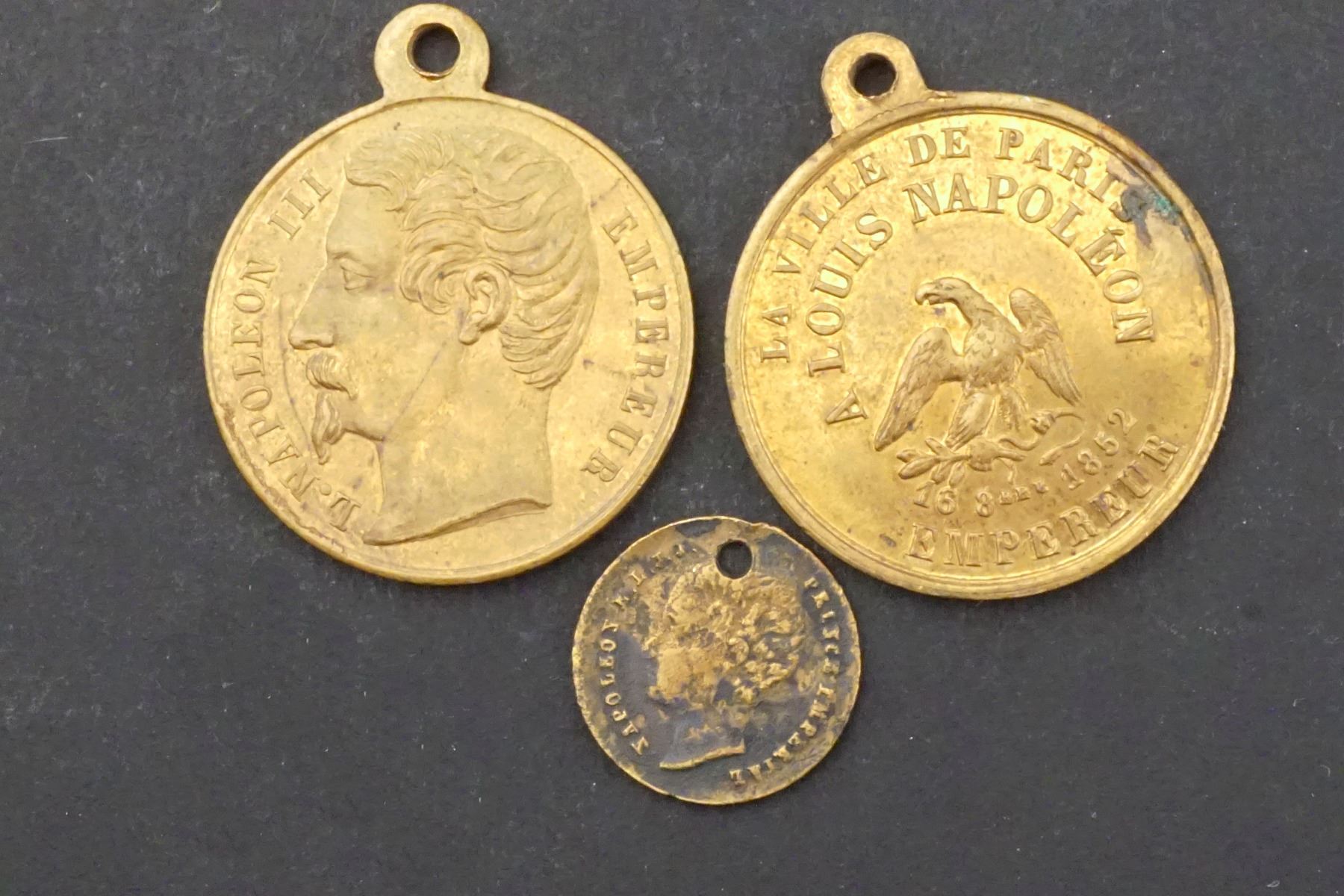 France - Lot of 3 Medalets of Louis-Napoleon, Napoleon III, + a tiny Medalet for the Birth of his Son.