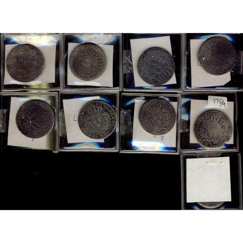 France. Lot of 9 pcs. Includes 1/2 ecu's 1726-1731. These are the only coins of this type recovered in this portion of the recovery work in 2002. The following dates are fair to visible, 1726A, 1726C, 1726D(2), 1729V, 1729-9 and 1731O. The 1729V is an unlisted date in the Krause. All are quite worn and show various degrees of see corrosion. A must see. Sold as is. VG to Fine<BR><BR>Each individual coin and/or lot will show the gradefollowed by a letter ranking (a), (b) and (c). The letter (a) will indicate that the salt water has had some minor affect on the coins and its patina is not unattractive. The letter (b) will indicate that the coinsshow some form of sea immersion affects in that the patina may show slightly more corrosion, however the coin remains aesthetically pleasing. The letter (c) will indicate sea immersion affects more severe than the (b) type described above, but all the dates and details will be there and visible. Extensively damaged or worn coins will be described and priced as such.<BR><BR>Notice. For all winners of lots pertaining to the Auguste Shipwreck, please be advised that due to Canadian Laws in reference to the Exportation of Archeological and Shipwreck finds, a request for permission to export these items must to be filled and sent into Canadian Customs for approval for every lot won and shipped outside Canada. In most cases this will cause a delay of 10 to 20 business days for all shipment of lots once payment received. We have been in discussion with Canada Customs and anticipate no problems. We ask for your patience and will do our best to keep each buyer updated on their lots. Please contact us for further information if necessary.