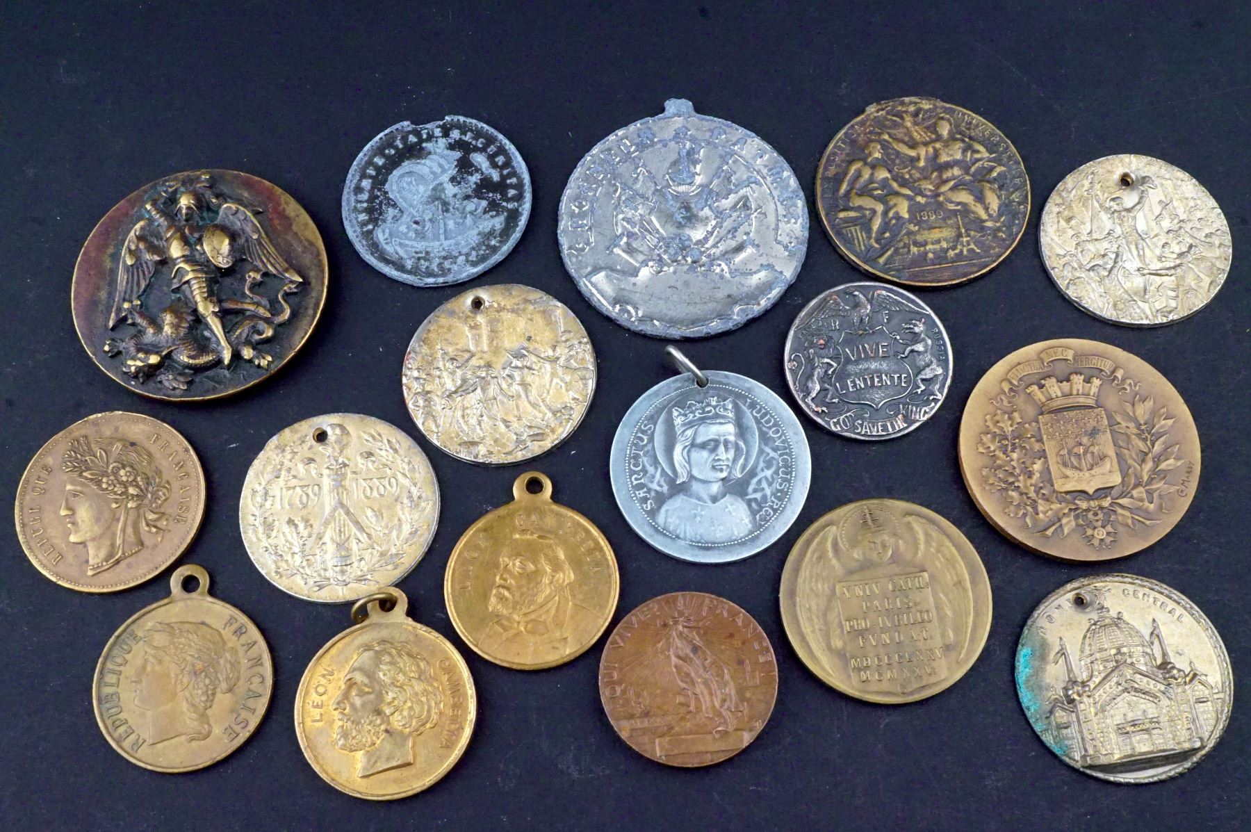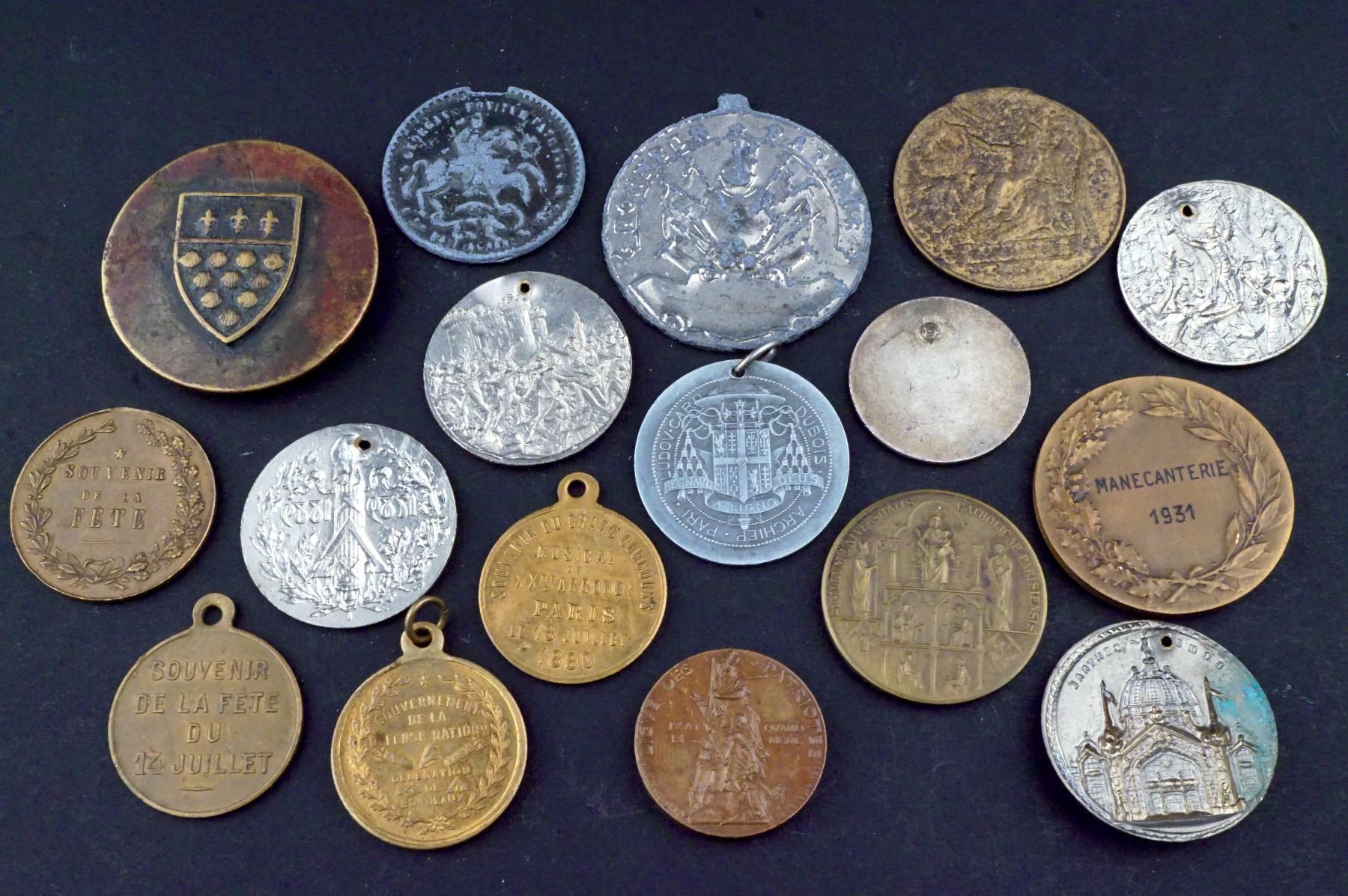 France - Lot of Five Small Medalets, early 3rd Republic PLUS 12 Misc. medals,