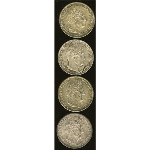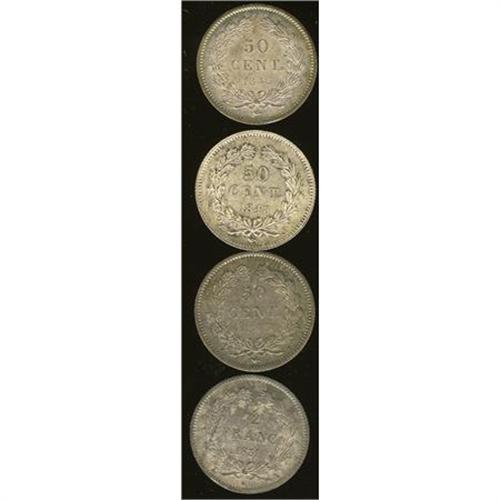 <B>Louis Philippe I Silver Quartet,</B></I> KM741.1 1831A, choice toned AU-UNC, KM768 1846B, two pieces, both superb UNC with gorgeous pewter and gold patina, and 1848A, choice toned UNC. An exceptionally attractive group of silver minors. <B>Sold as is, no return lot.</B></I><BR><BR><b>Shipping:</b> Coins & Currency (<a target="_blank" href="http://www.heritageauctions.com/common/shipping.php">view shipping information</a>)