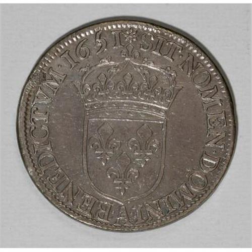 <B>Louis XIIII 1/2 Ecu 1651A, </B></I> KM164.1, XF, lightly cleaned long ago and now toning, some slight planchet porosity, bold 5/4 overdate.<BR><BR><b>Shipping:</b> Coins & Currency (<a target="_blank" href="http://www.heritageauctions.com/common/shipping.php">view shipping information</a>)
