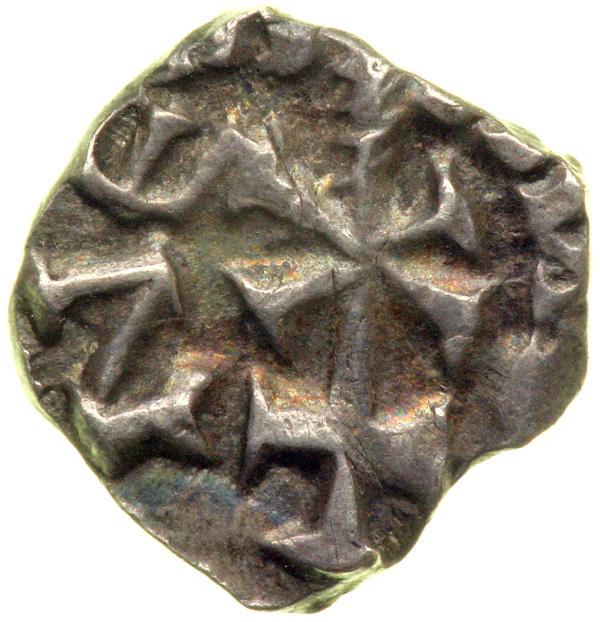 France - Merovingian. Silver Denier (C.700-710 AD). Marseille - Nemfidius (Patricius). 1.079 grams. Belfort-2626; Roberts-61. Obverse: Bust left with cross in front. No legend. Reverse: Christogram. Legend: Nem (fidius). Superb portrait. Rare. Choice Very Fine.
