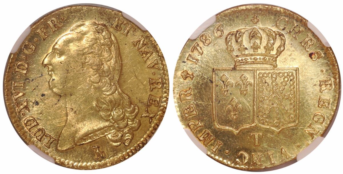 France (Nantes mint), double Louis d'or, Louis XVI, 1786-T, encapsulated NGC MS 62.