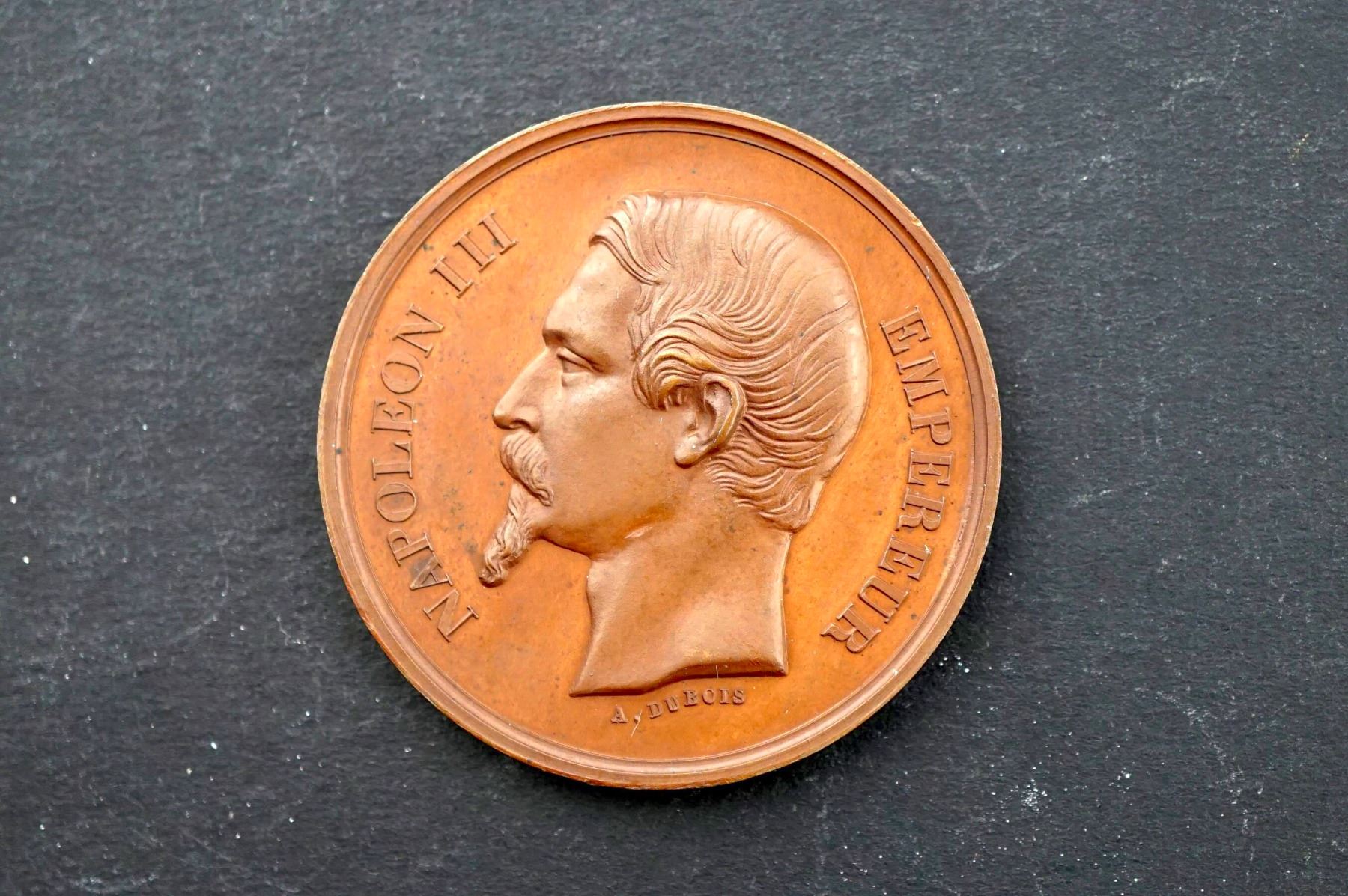 22.9 grams. Bare headed bust, left. Signed: A. DUBOIS below. Reverse: Proclamation of Imperial Title, decided by Plebiscite, in eight lines.