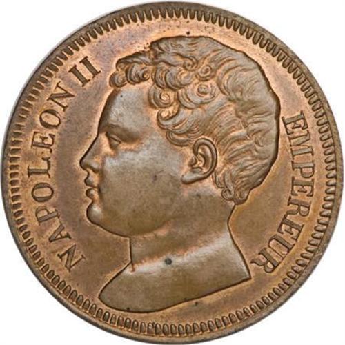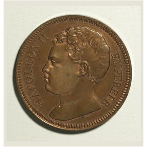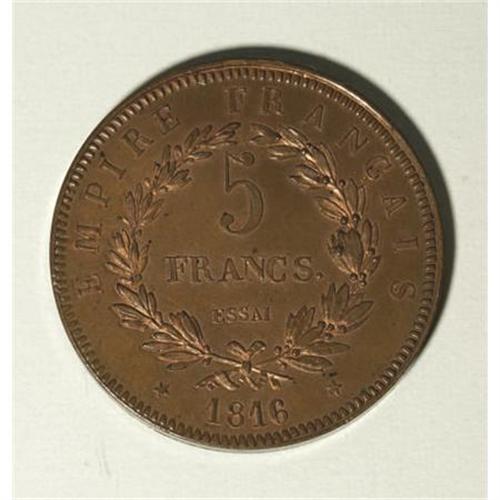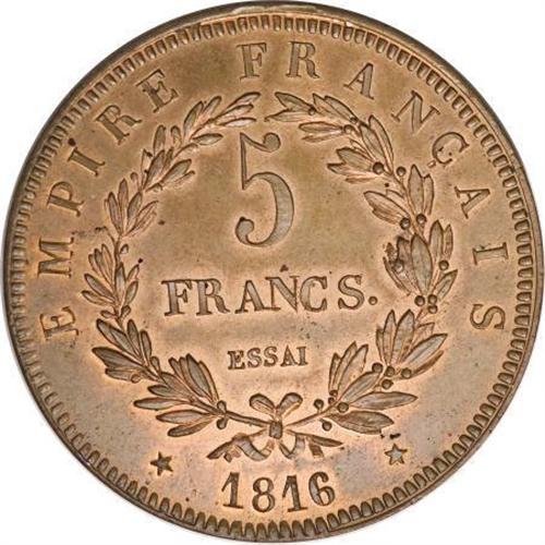 <B>Napoleon II Pretender Copper 5 Francs 1816,</B></I> KM-XE14a, choice lustrous UNC, superb details with a tiny spot on the bust. Plain edge and with ESSAI on the reverse.<BR><BR><b>Shipping:</b> Coins & Currency (<a target="_blank" href="http://www.heritageauctions.com/common/shipping.php">view shipping information</a>)