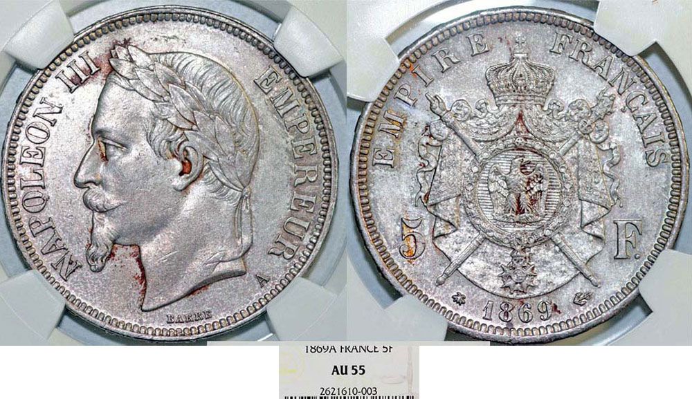 Grade: NGC graded and certified as AU55, nice grey toning.