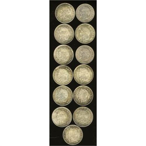 <B>Napoleon III 20 Centimes Selection,</B></I> KM805.1 1864A, two examples, both choice UNC, very scarce date, and KM808.2 1867BB, eleven pieces, all choice toned UNC. Catalog value is $680. <B>Sold as is, no return lot.</B></I><BR><BR><b>Shipping:</b> Coins & Currency (<a target="_blank" href="http://www.heritageauctions.com/common/shipping.php">view shipping information</a>)