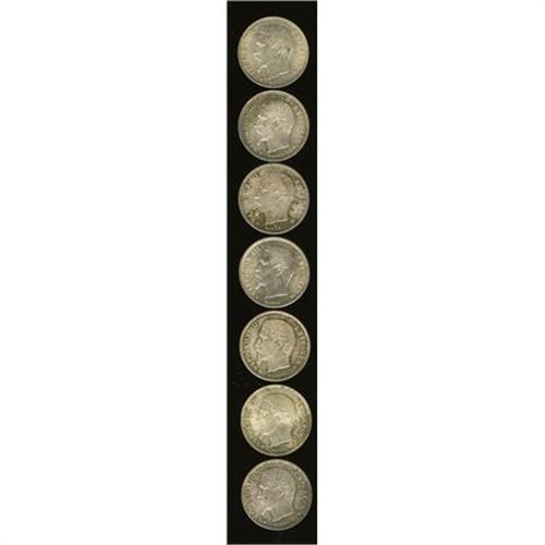 <B>Napoleon III 50 Centimes Selection,</B></I> KM794, seven choice UNC examples featuring: 1854A, 1858A, 1860BB (2) and 1862A (3). All are superb original coins with appealing old-time patina. Current catalog value is $1200. <B>Sold as is, no return lot. <BR><BR><b>Shipping:</b> Coins & Currency (<a target="_blank" href="http://www.heritageauctions.com/common/shipping.php">view shipping information</a>)