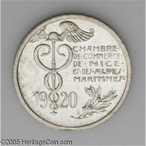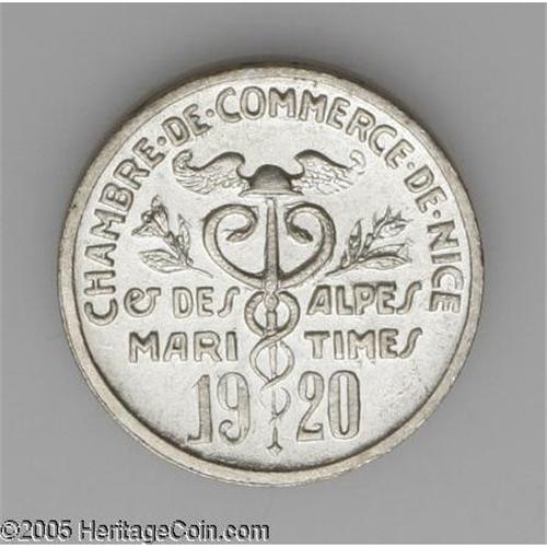France. Nice Chamber of Commerce Tokens 1920, 5 and 10 Cent Nice Chamber of Commerce Tokens 1920,