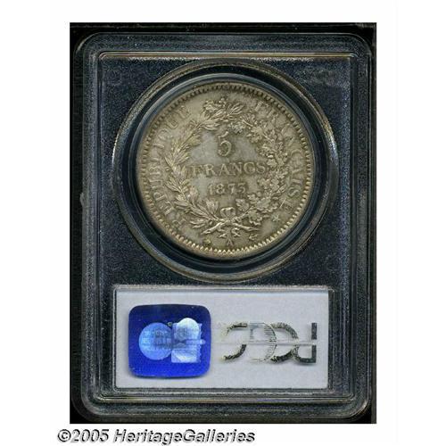 France. Republic 5 Francs 1873A, KM820.1, MS67 PCGS, an inc Republic 5 Francs 1873A,