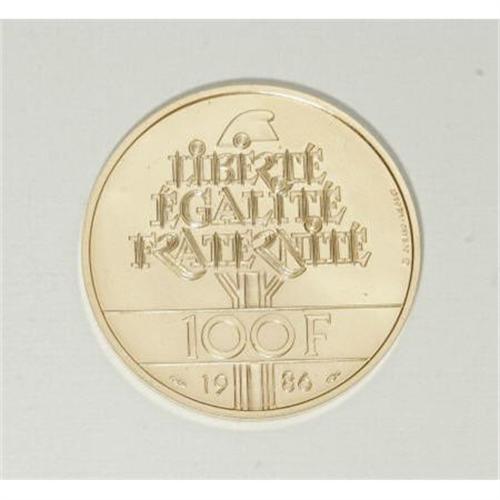 France Republic gold 100 Francs 1986 Statue of