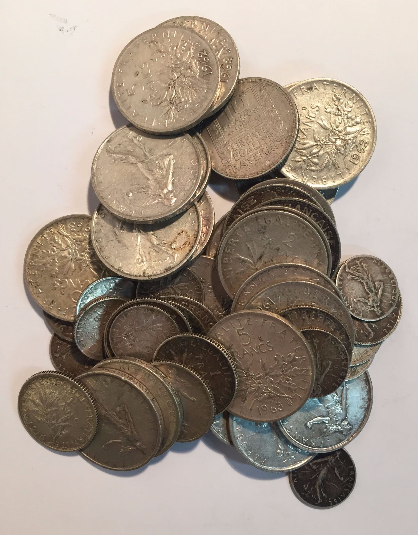 France Silver Coin Lot. Includes 48 Coins. 410.7 grams total weight.