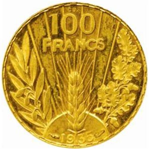 France. Third Republic (1871-1940). Gilt Bronze Essai 100 Francs. 1935.