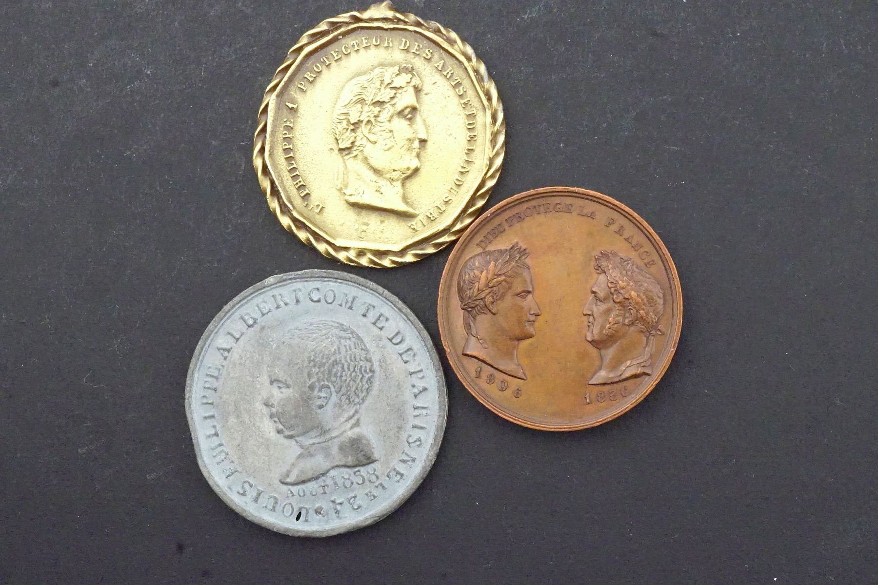 Lot of 3 medals, 2 small of Louis Philippe and 1 for his son Louis Philippe Albert. Size: 26, 27, 29 mm.