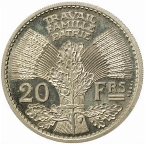 France. Vichy State (1940-44). Copper-Nickel Pattern Essai 20 Francs by Vezien and Cochet. ND (c. 19