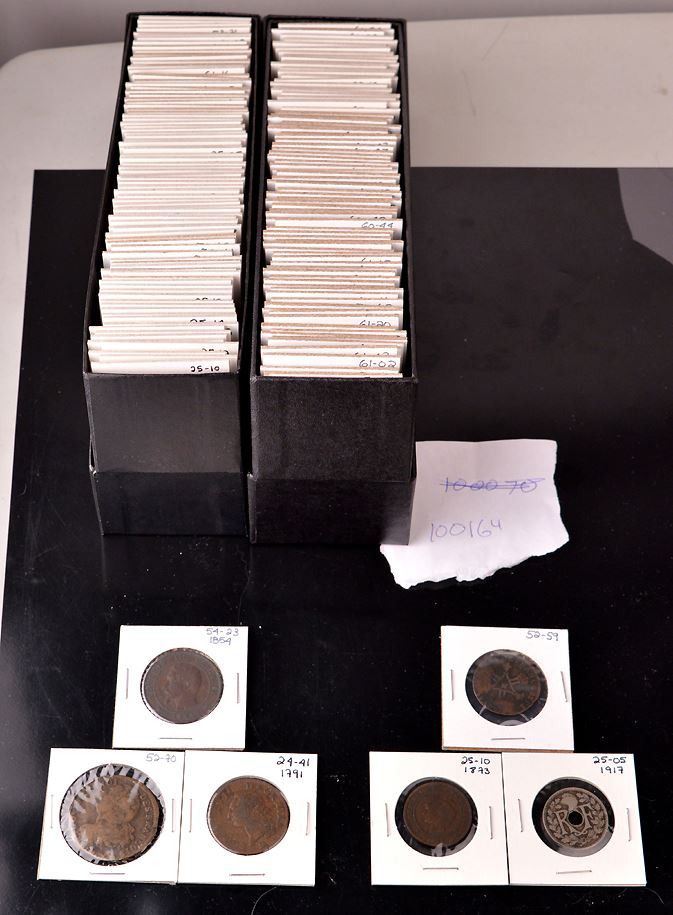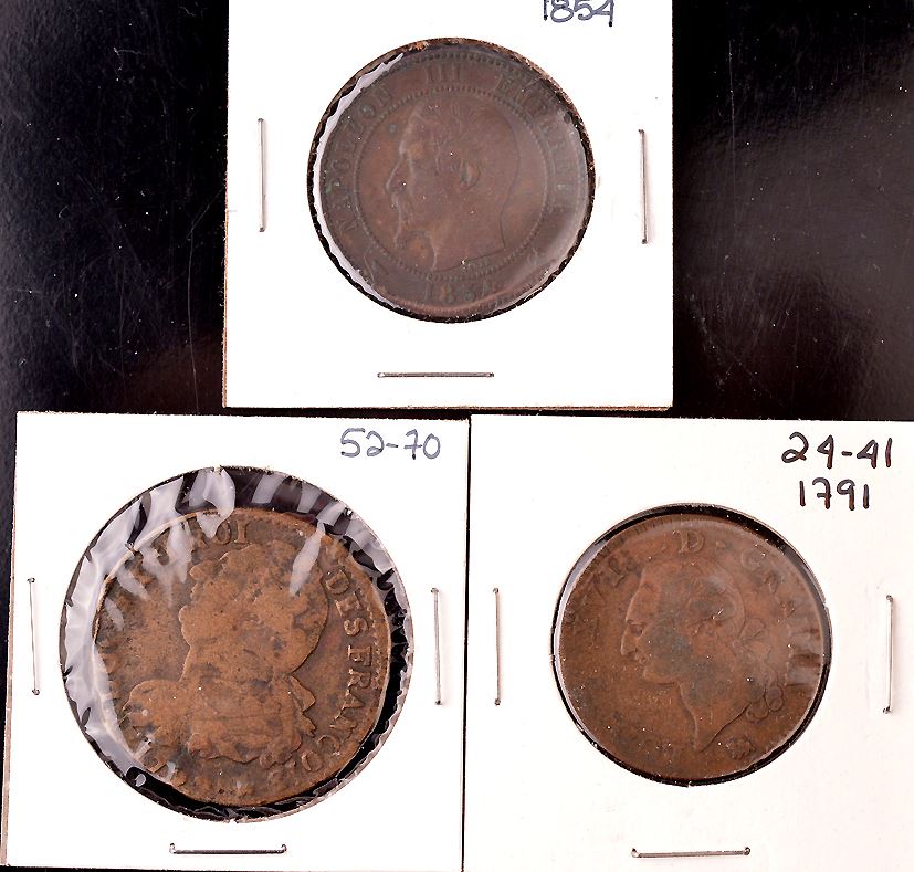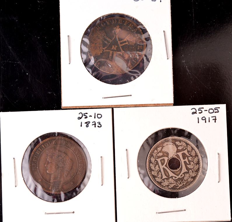 France, copper coins, 1710-1792, (15); 1800-1897, (96); modern France, base metal, 1899 to 1980's, (67); most early coins are well worn; total of 178 coins.