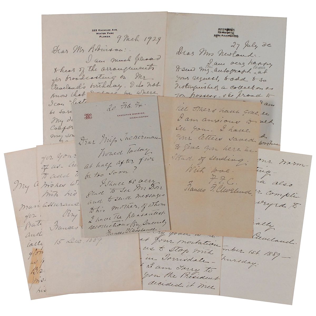 Collection of eight items, consisting of six ALSs (four as first lady), one free franked mailing envelope, and an ink signature, all dated between 1887 and 1936. One lengthy ALS, six pages on two sets of adjoining sheets, Executive Mansion letterhead, September 1, 1887, in part: “I am sorry to tell you the President has decided it will be best to go to a hotel in Philadelphia instead of accepting any of the invitations we have received…it will be much more convenient to be at a hotel near the center of things. The President especially will not be in any one place very long except at the reviewing stand.” A later letter, in part: “I am much pleased to hear of the arrangements for broadcasting on Mr. Cleveland’s birthday…I do not know that I shall be where I can ‘listen in,’ but you may be sure I shall try to do so.” In overall fine condition.