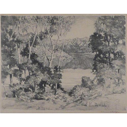 Frances Farrand Dodge (1878-1969), Litho, "Lake", 11" x 14", Pencil signed lower right.