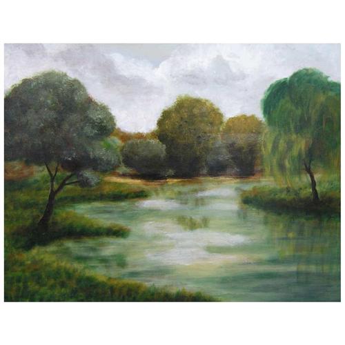 Italian/Canadian [b. 1968] SERENE POND acrylic on board 28 x 36 in. (71.1 x 91.4 cm) signed
