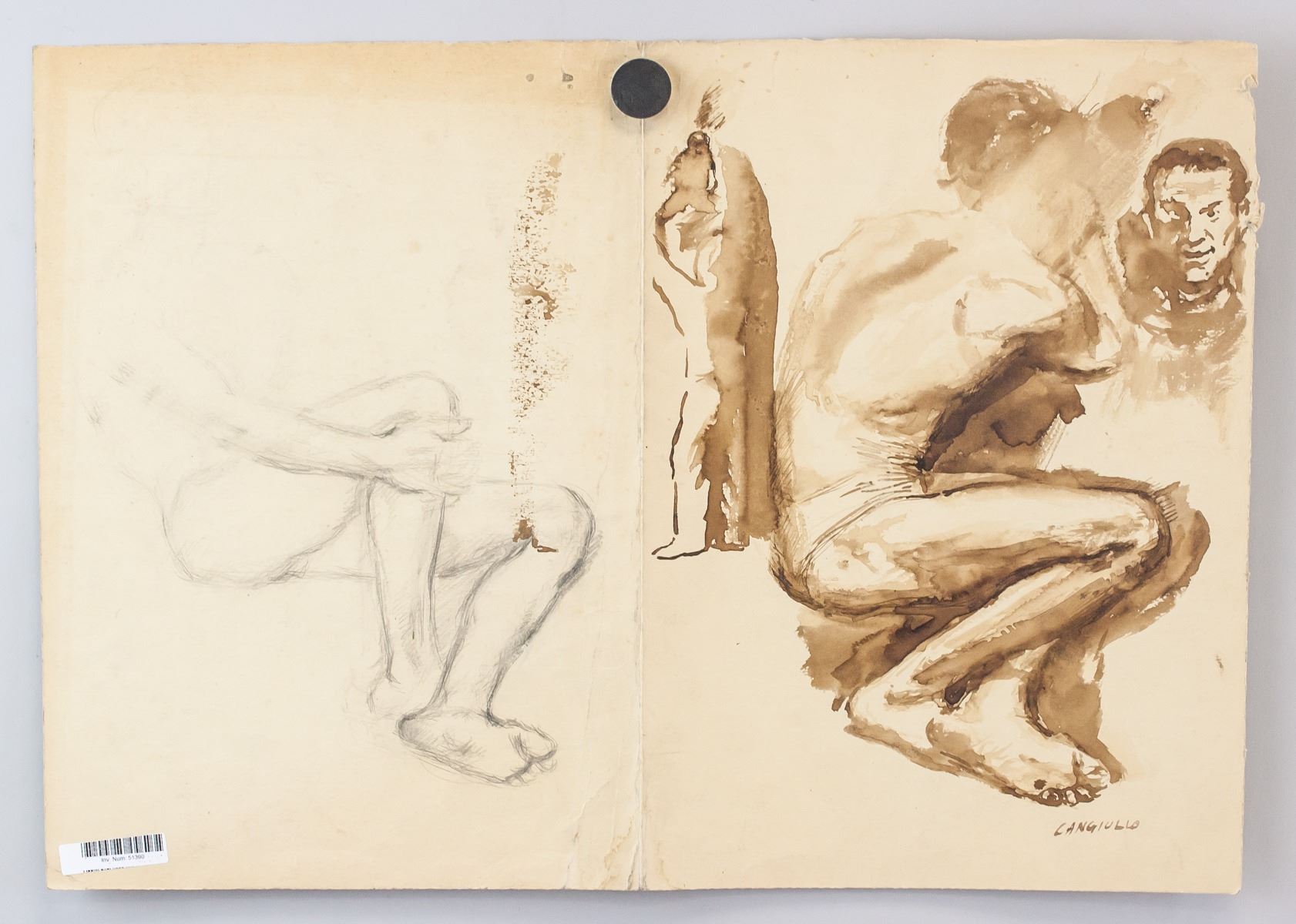 Ink on paper. Featuring sketches of the human figure and head. Signed "CANGIULLO" in the bottom right corner. Attributed to Francesco Cangiullo (1884-1977, Italian). 32 x 25 cm (14 x 10 in). PROVENANCE: This lot carries limited provenance from a Southern Ontario estate