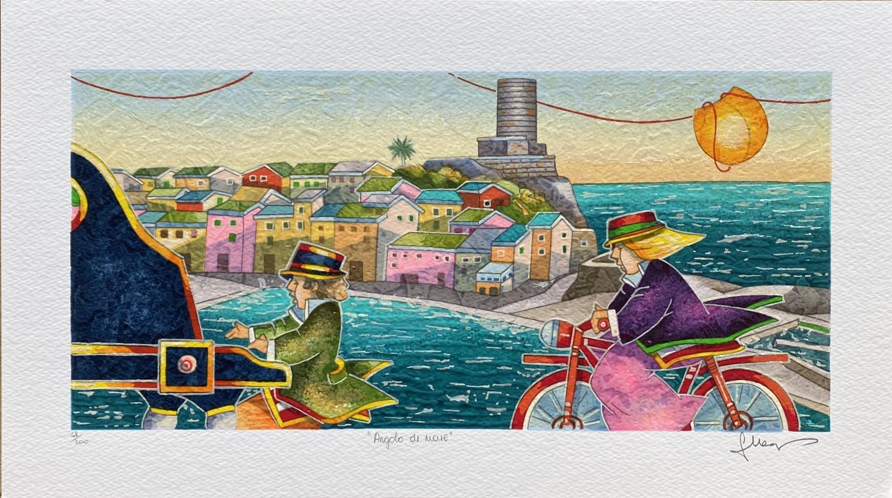 Artist: Francesco Nesi. Medium: Original Serigraph on Paper. Title: ANGOLO DI MARE. Size (Unframed): 10" x 18". Certificate of Authenticity: Is Included.