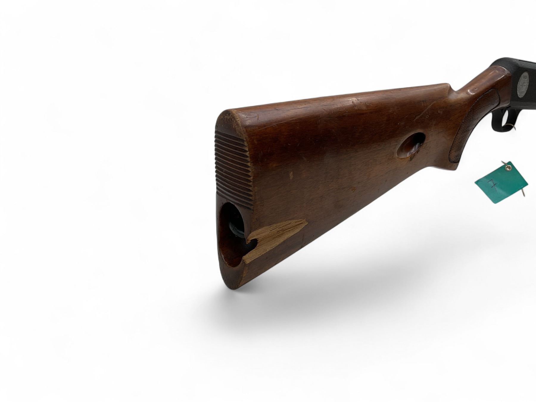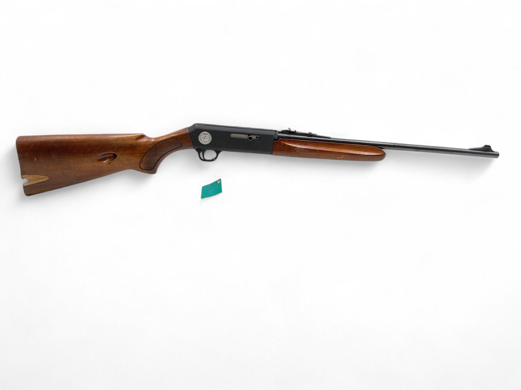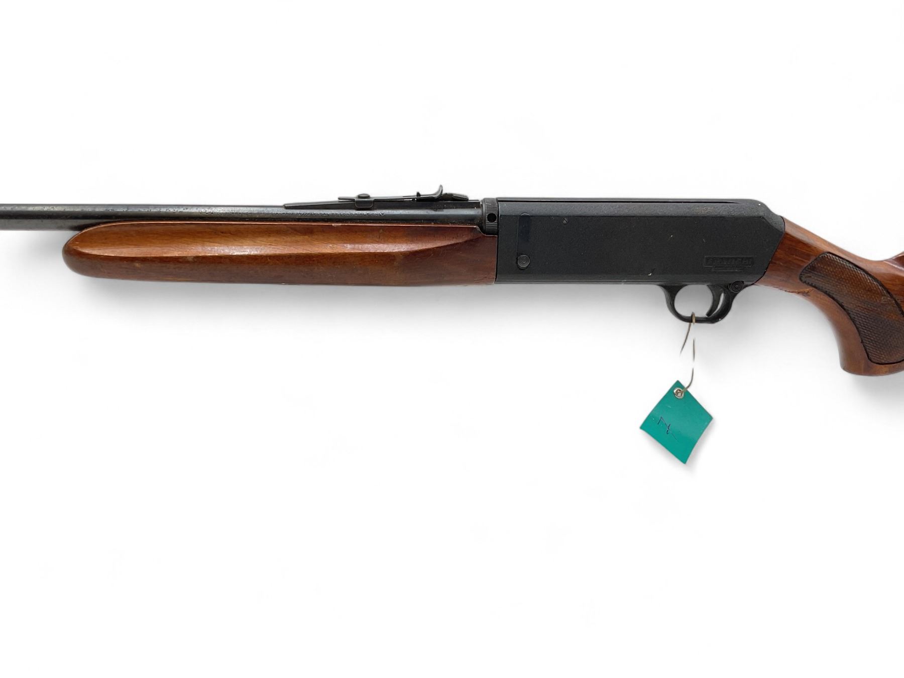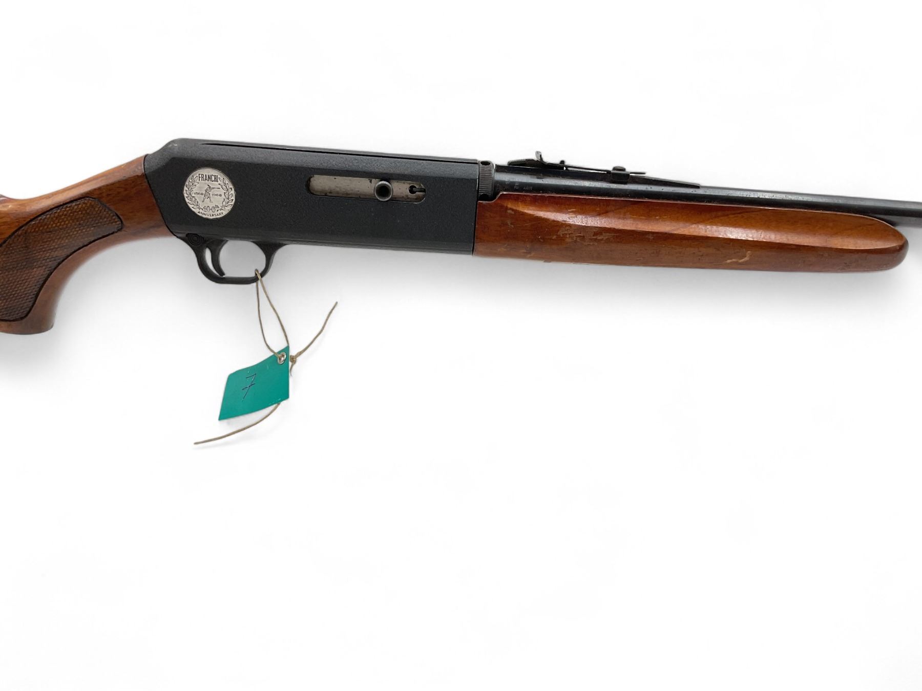 Franchi Centennial Semi Auto Rifle 22LR 21" Barrel Wood Stock. Tubular magazine. Ramp front sight; adjustable rear sight. Rear stock broken and cracked at bottom. This is a non-restricted firearm