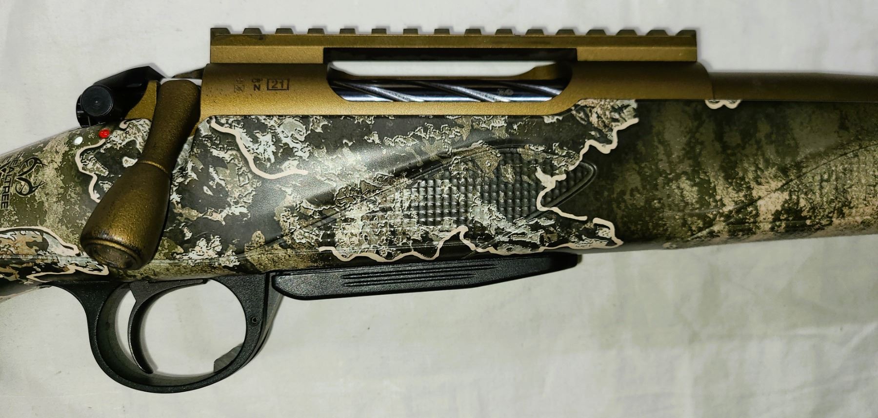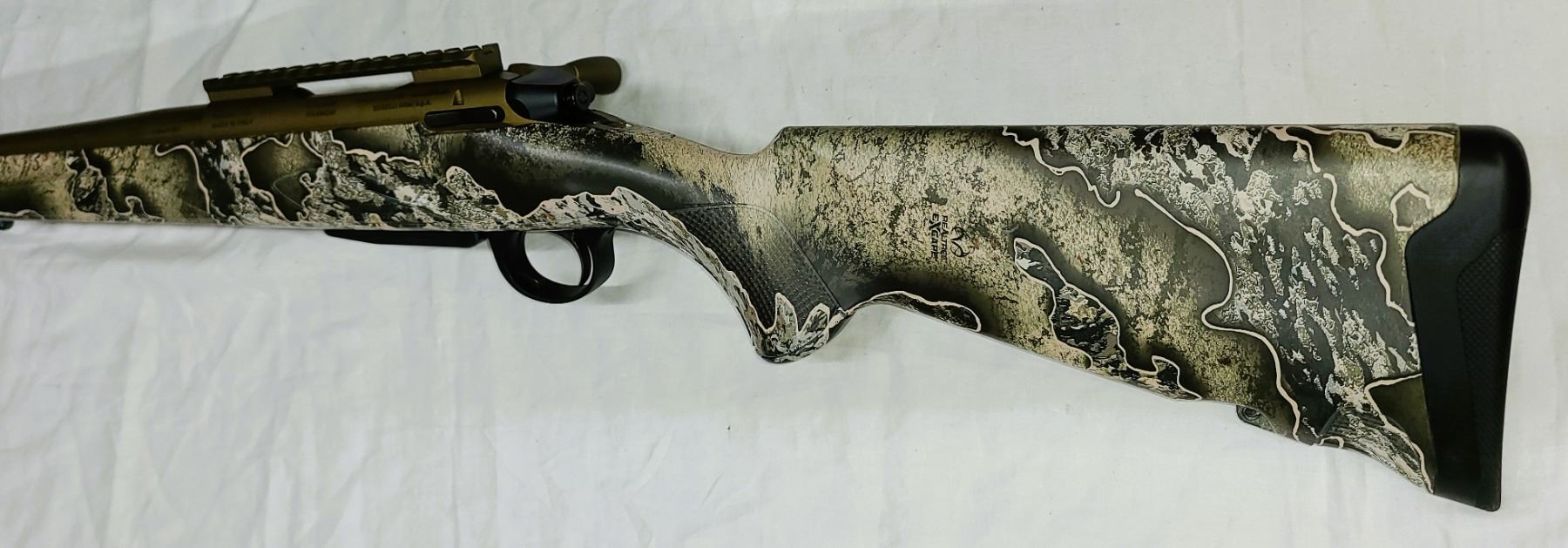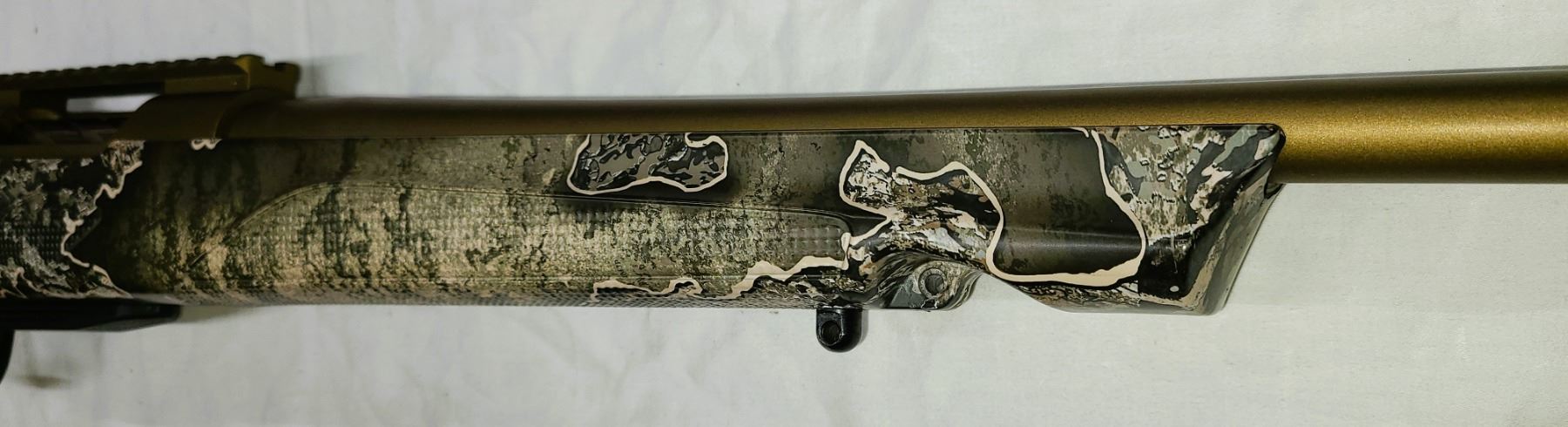 advanced ergonomic stock in Bronze Cerakote finish on the barrel and receiver for