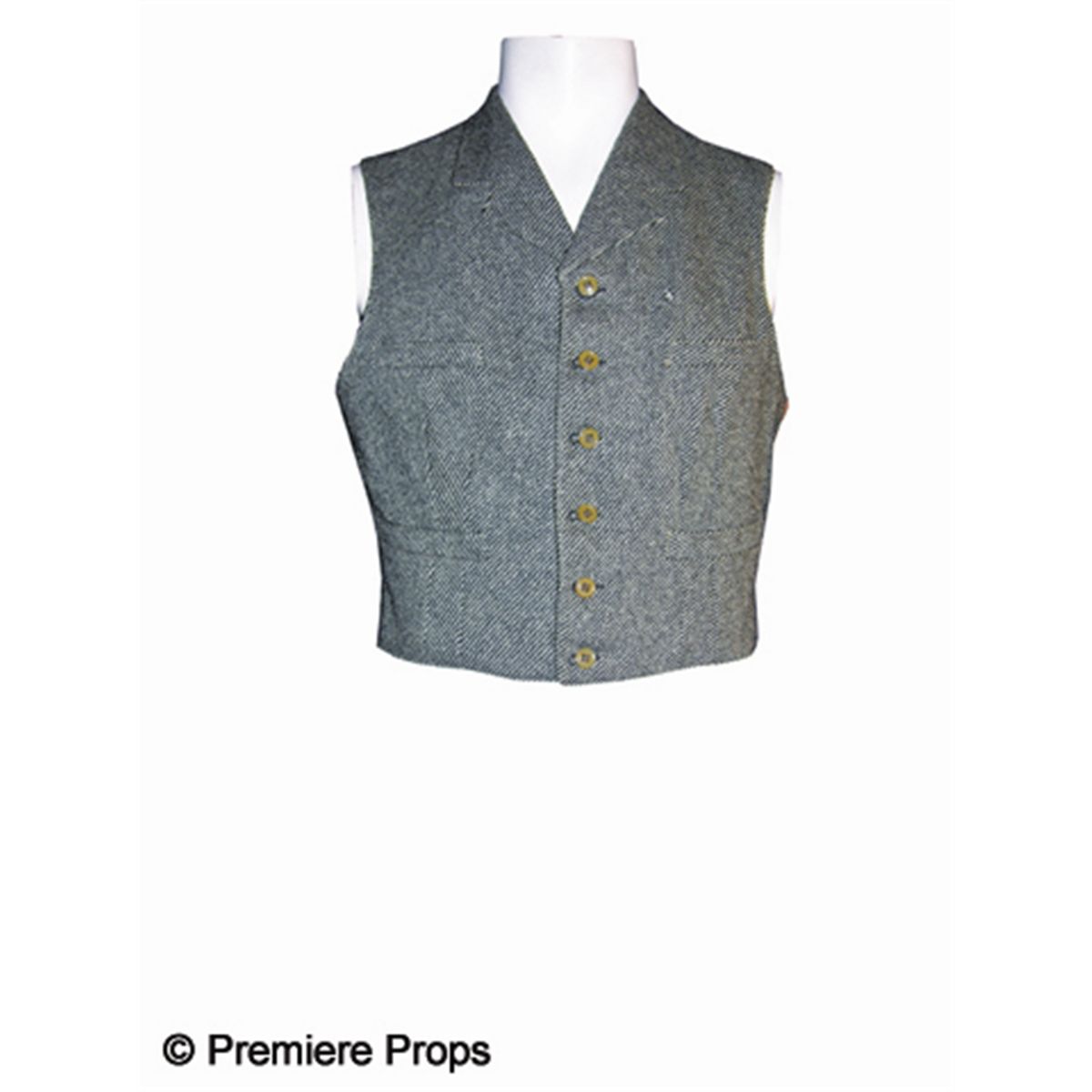 Back and white striped vest, worn by Golden Age leading man Franchot Tone, a veteran of such films as Mutiny on the Bounty, Quality Street and Advise and Consent. Includes a United Costumers label on the inner lining, with Tone's name handwritten on it.