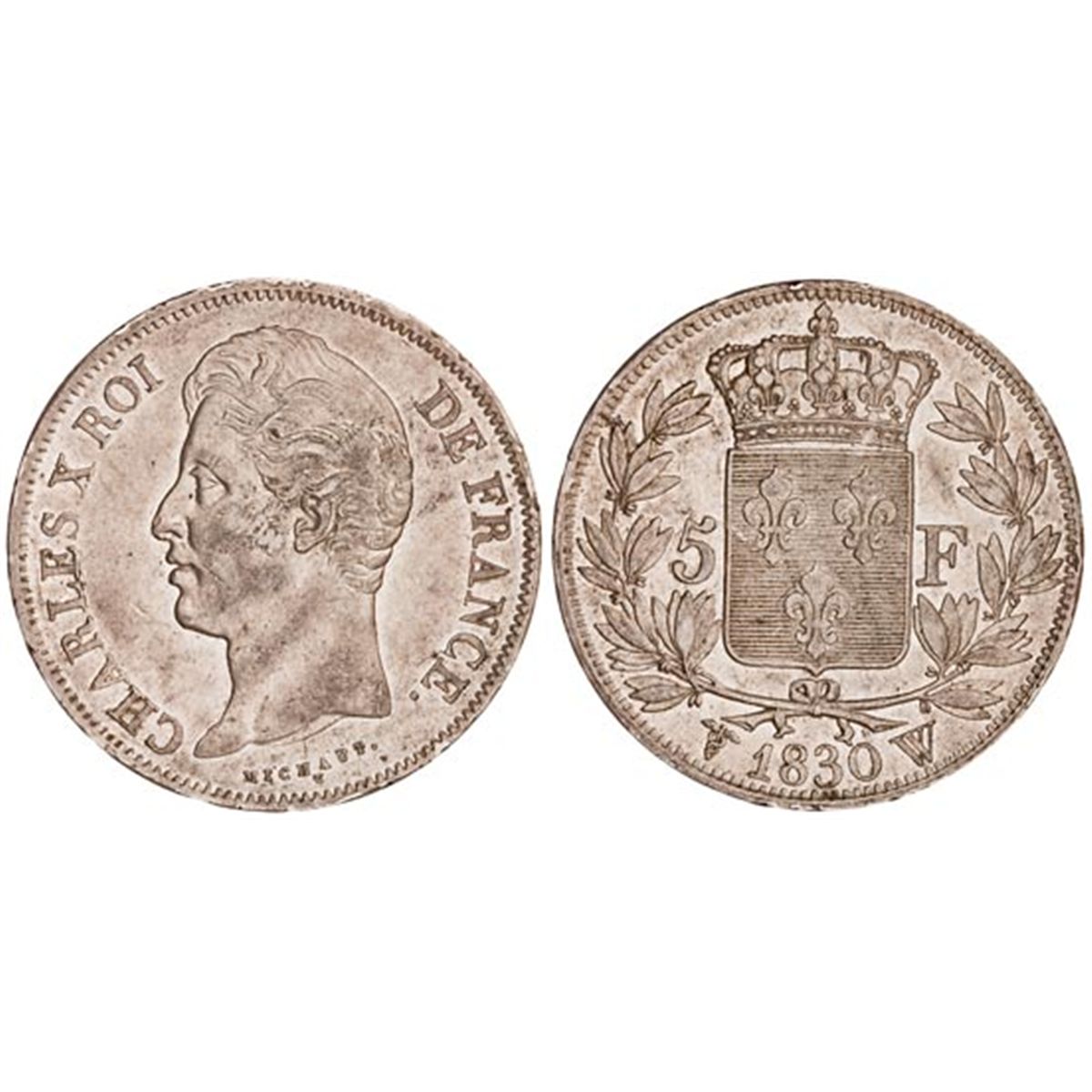 Francia. Charles X. 5 francos. 1830. W. Brillo original. KM-728.13. Ar. EBC-.