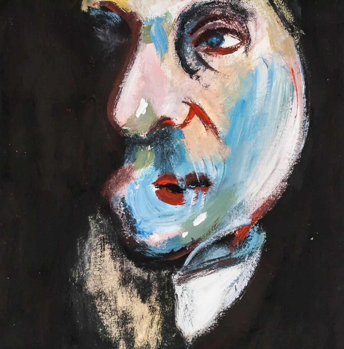 Oil on paper. Featuring an expressionist portrait. Signed Francis Bacon on the lower left corner. Inscribed 20 on verso and stamped illegibly. Attributed to Francis Bacon (1909-1992, British). 27.5 x 19 cm (10.75 x 7.5 inches). PROVENANCE: Southern Ontario estate