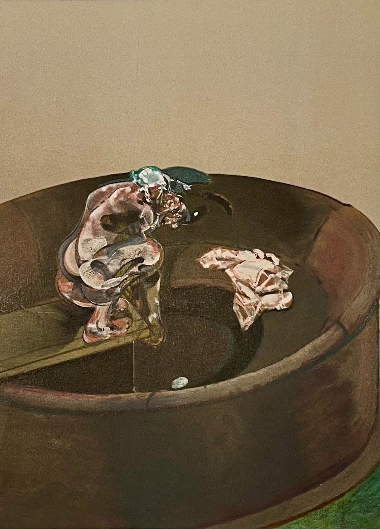 Francis Bacon (1909-1992) Original color lithograph. Titled: "George Dyer Crouching." Publisher: Paris: Maeght, November, 1966. From Derriere le Miroir, no. 162. Sheet: 15 x 11 inches.