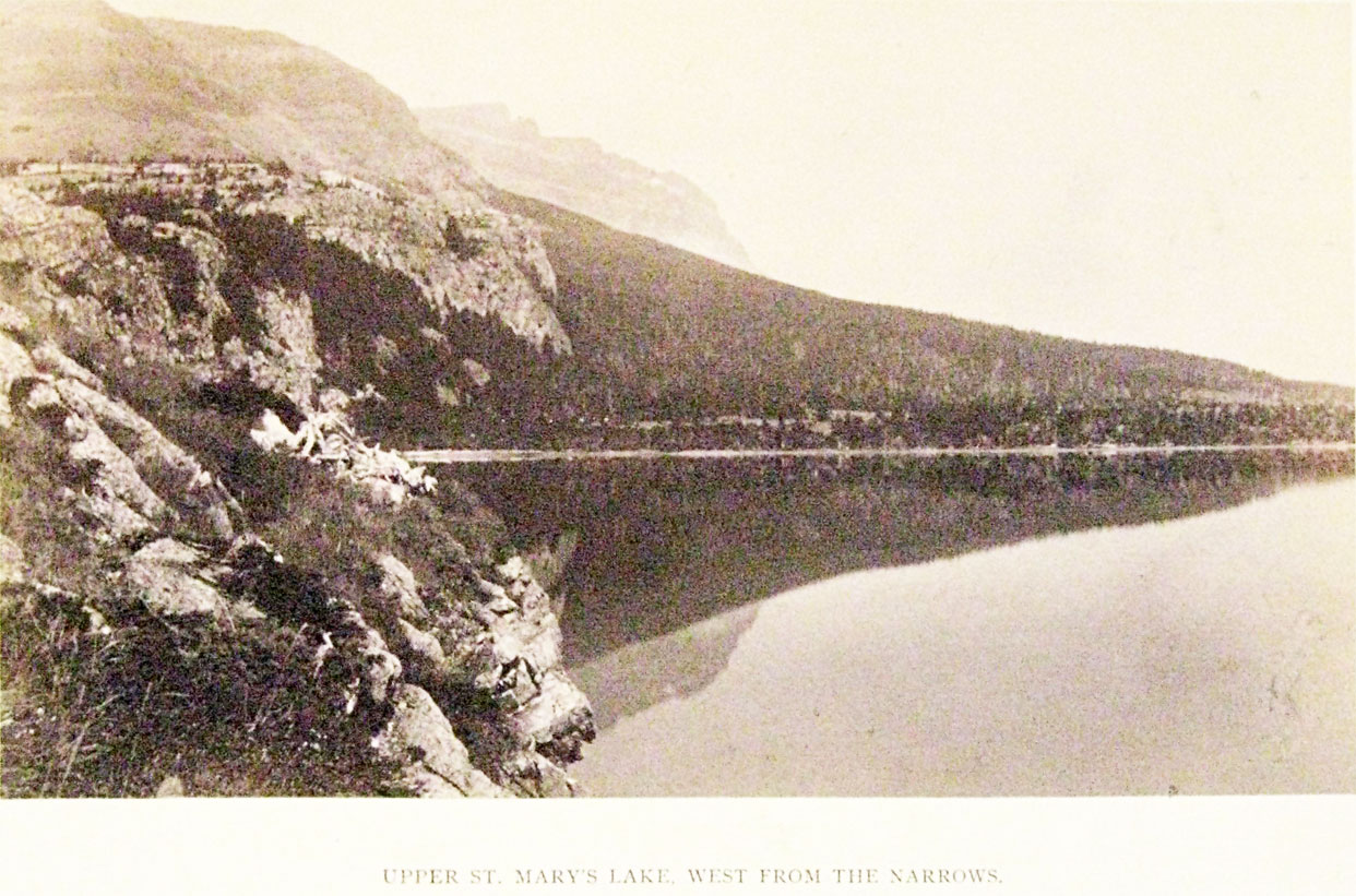 west from the Narrows, 4 ½” x 8”, original photo from his book Sport Among the Rockies, published in 1889 in an edition of only 15 copies; one of Montana’s rarest books. The earliest known photograph of Glacier National Park before it became a National Park.