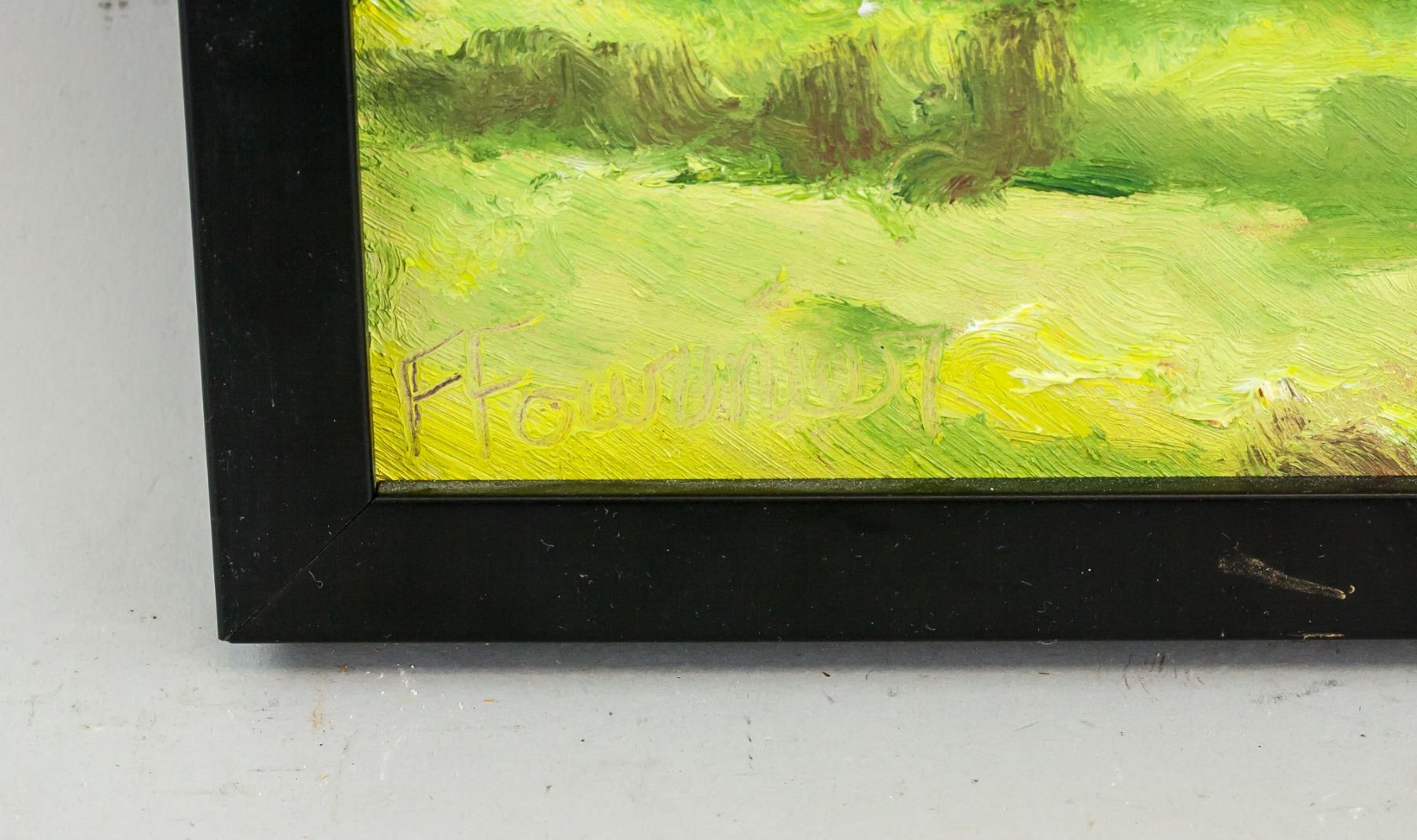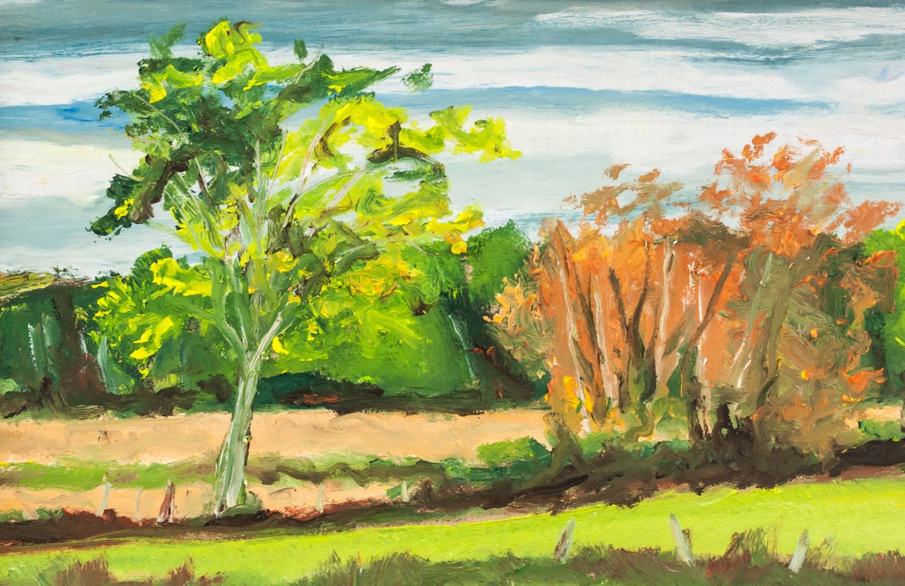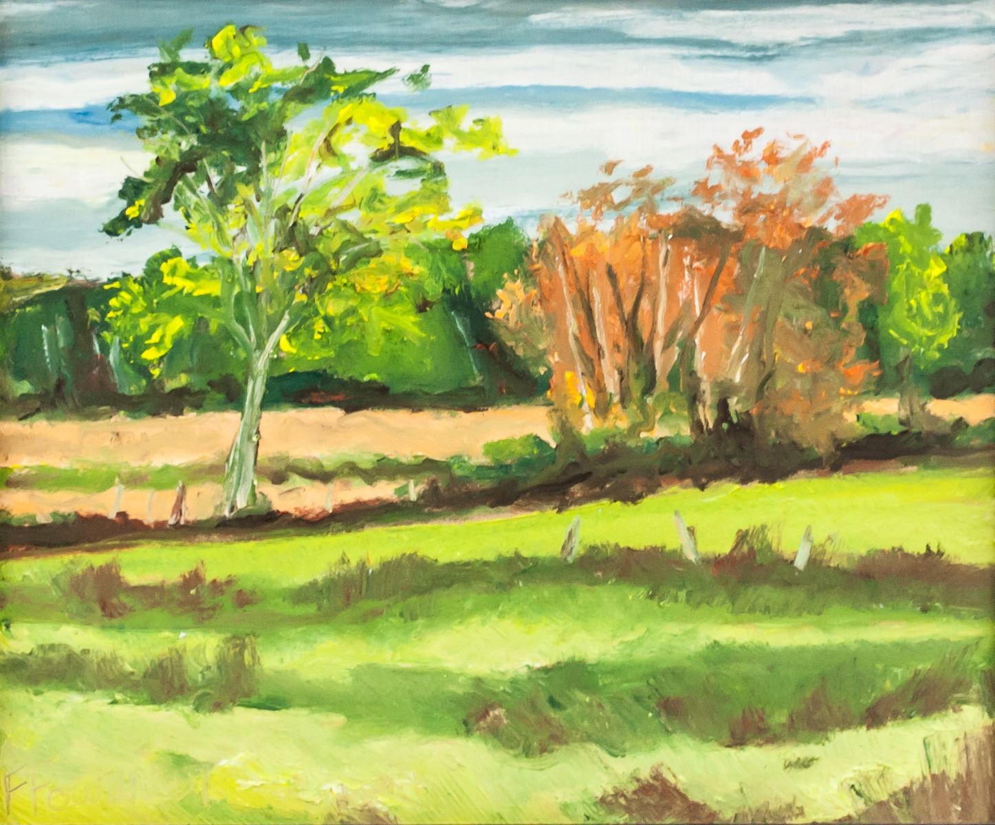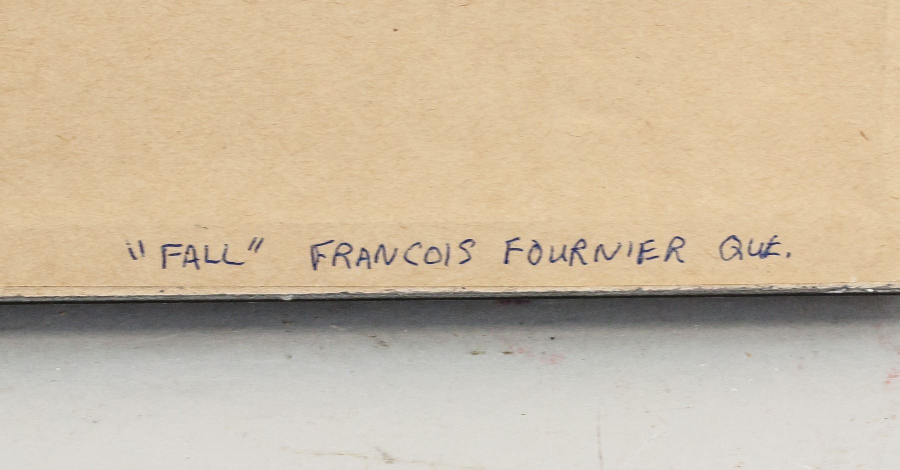 Oil on canvas, framed. Featuring a landscape scene. Signed F. Fournier on the lower left corner. Inscribed alongside lower edge of verso "Fall" FRANCOIS FOURNIER QUE. Attributed to Francis Fournier (20th Century, Canadian). 24.5 x 29.5 cm (9.7 x 11.6 inches). PROVENANCE: Private Canadian collection