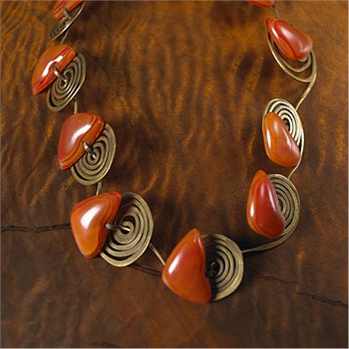 Francis Higgins necklace Higgins Studio USA, c. 1960 glass, brass 16"w x 1"h Provenance: Personal collection of Francis Higgins Private collection, Chicago