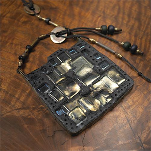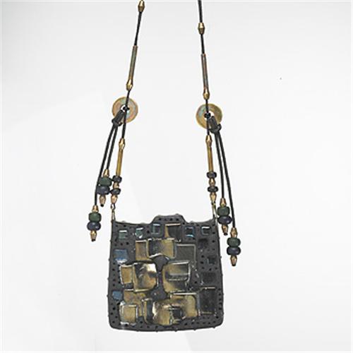 Francis Higgins necklace Higgins Studio USA, c. 1960 glass, brass, copper, resin 3"w x 3"h Provenance: Personal collection of Francis Higgins Private collection, Chicago