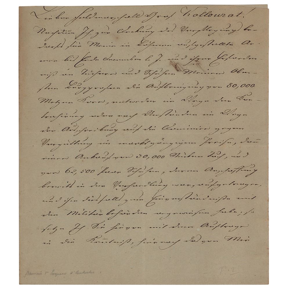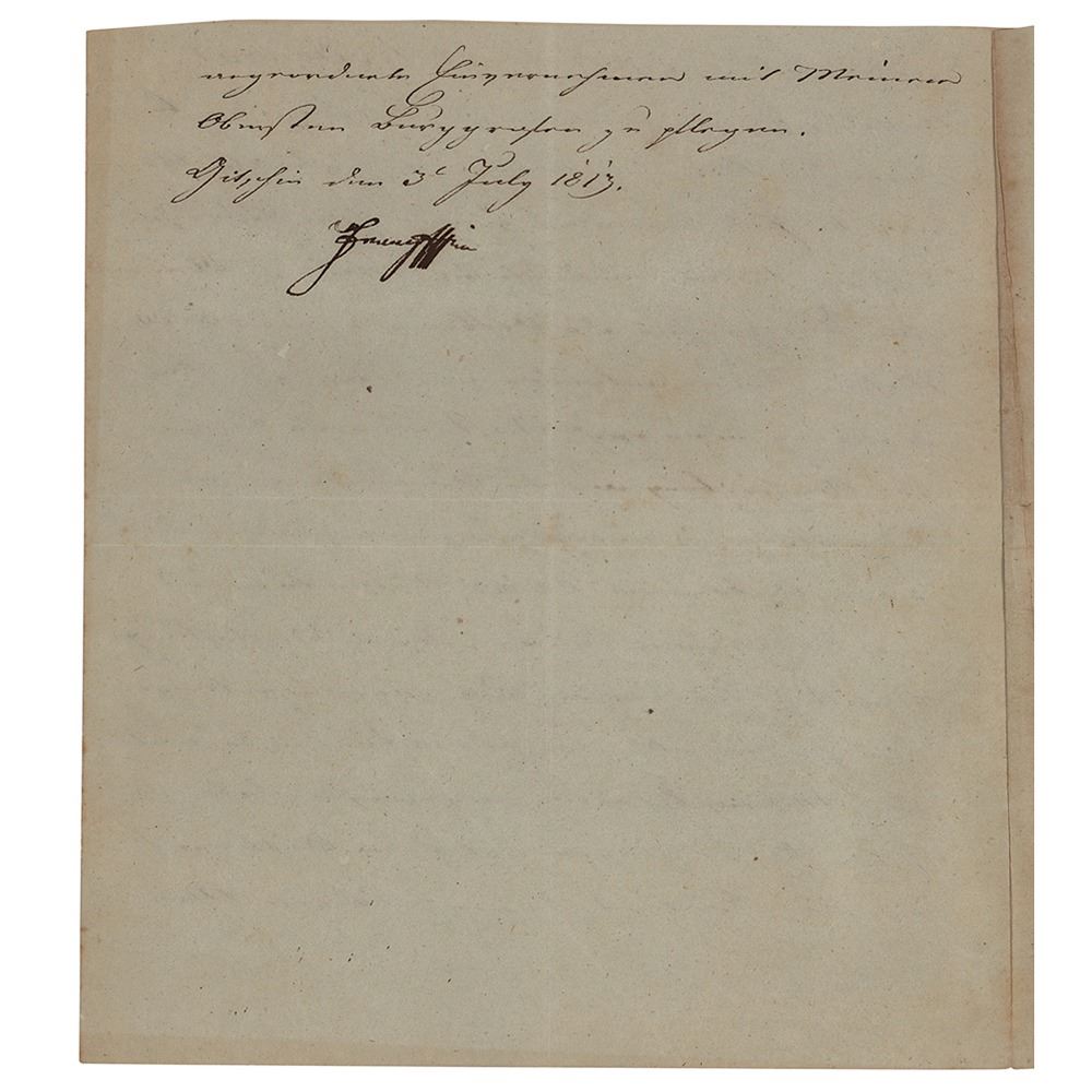 LS in German, one page both sides, 7.5 x 8.5, July 3, 1813. Untranslated letter signed at the conclusion by Francis as Emperor of Austria. In fine condition, with trimmed edges.