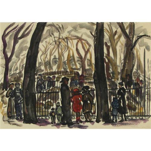 Francis Marian Cronk (1906-1992) Watercolor, A Day At The Denver Zoo, 1938, 14" x 19", signed lower right