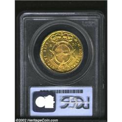 Francis Ximenez gold 20 scudi 1774, Bust right with date below/Crowned shields and value, F-41, KM-294, MS62 PCGS. Bright luster with noticeable reflectivity and faint adjustment marks on both sides. Important notice: We expect to be auctioning lots at the rate of 200-250 per hour. Sometimes eBay Premier live bid software cannot keep up with that pace, so we strongly recommend that you place a realistic proxy bid now as insurance to avoid disappointment. Also please note that all Heritage/CAA lots purchased through eBay Premier carry a 20% Buyer's Premium. Please make sure you read the Terms and Conditions.