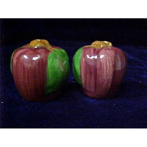 Franciscan Apple Salt and Pepper Shaker Set. This set is in very good condition, there are no chips or cracks. The stopper on the bottom however are very brittle from age and can easily break so the should be replaced. The year is unknown.