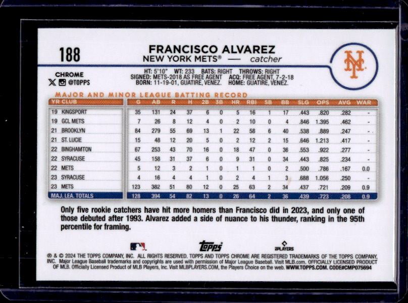 Francisco Alvarez Negative Refractor SP 2024 Topps Chrome #188