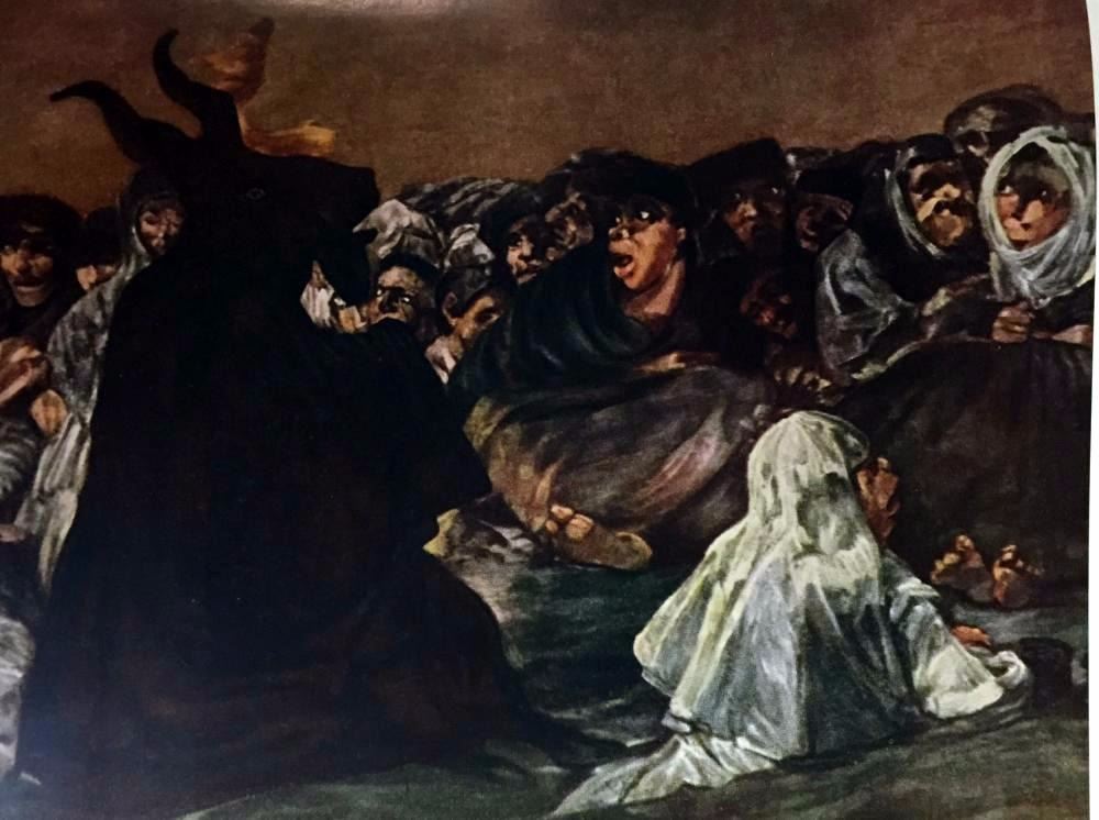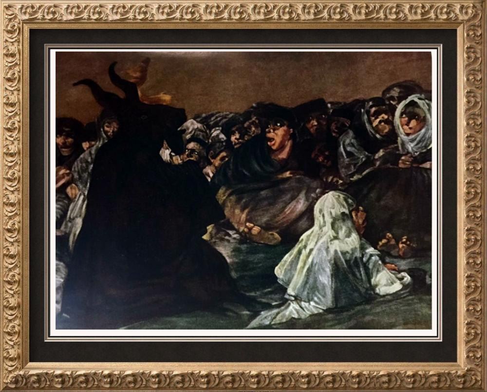 Artist Name: Francisco Jose de Goya y Lucientes | Title of Art: (Plate Fourteen) Detail of The Witches Sabbath c.1819-23 | Medium: Fine Art Print | Unsigned & Unnumbered | Art Size: Approx 8 x 10 | Offered Unframed. Framing presentation if shown is for concept only. If you need assistance with custom framing, call the experts at ArtForSale | Circa: 1954