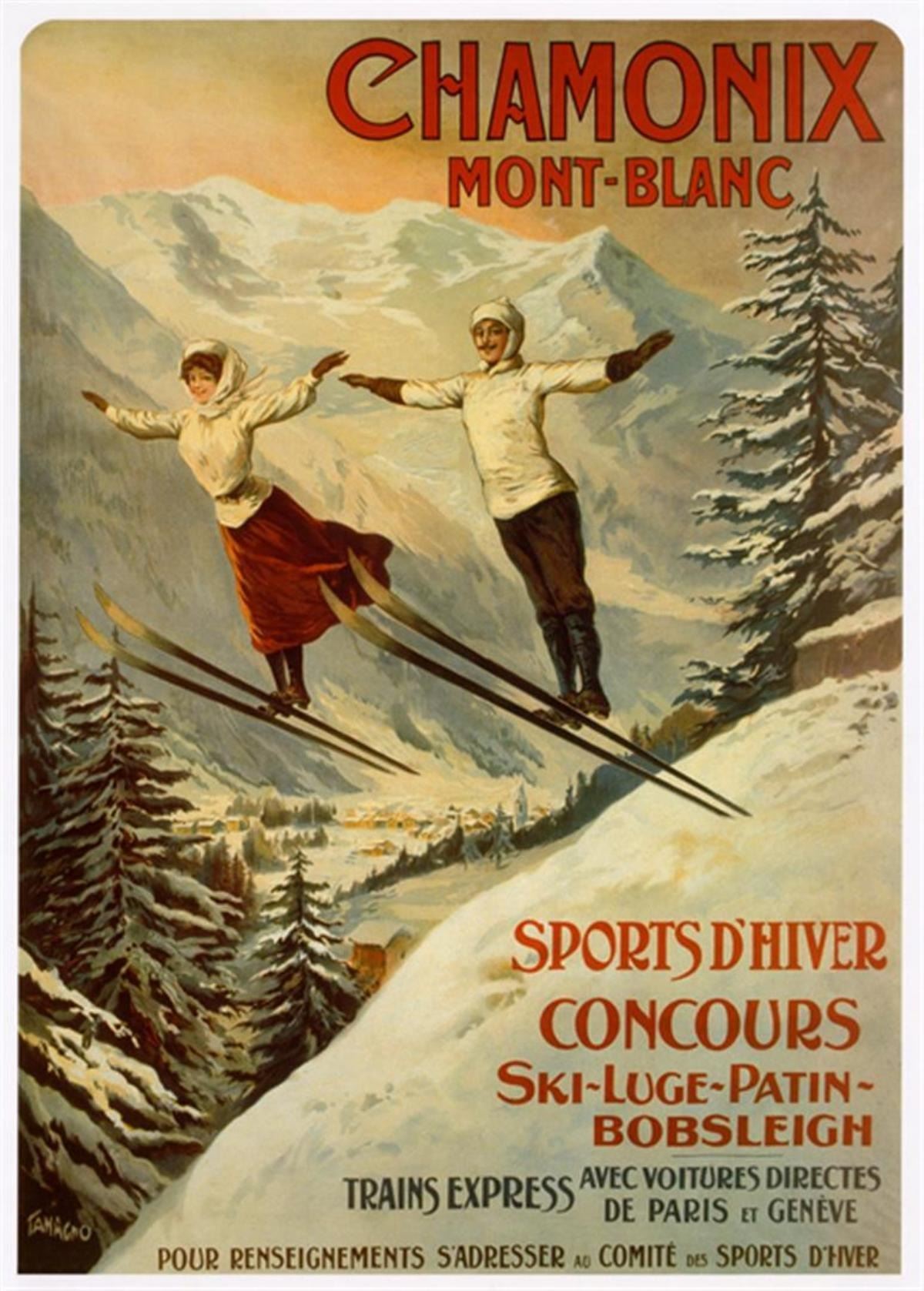 Artist: Francisco Tamajno Title: Chamonix Montblanc Medium: Fine Art Giclee on Canvas Image Size: Approximately 20 inches x 14.25 inches Framed: Unframed on Unstretched Canvas Details: Beautiful Reproduction Giclee on Canvas Biography: Very little biographical information about Tamajno can be found. It is well documented that he was one of the artists under contract with theprinter Camis, who claimed to have the largest printing presses in the world, and certainly retained major companies as clients. Throughout his career Tamajno designed many different posters for Terrot, a company which, from very early on, seemed to have a clear advertising concept: speed. For each of his posters for the company, Tamajno illustrates a humorous story of a woman outpacing other forms of transportation, such as bicycles, cars and trains. Tamajno's images are well balanced in design and print.